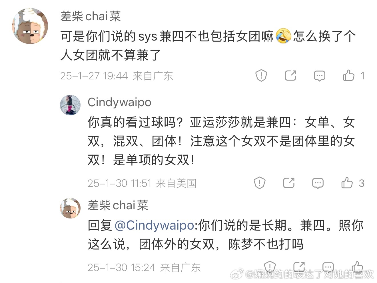 翻微博翻到这条第一个人把陈梦的女团和在女团里打的女双算成两项第二个人把孙颖莎的个