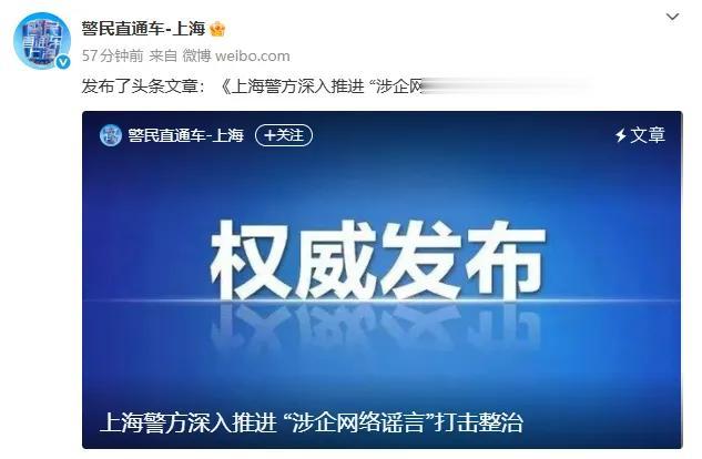 上海警方表示,将依托“砺剑”“净网”等专项行动,对编造、传播涉企虚假信息的违法行为开展全链条打击,努力做到发现一起、查处一起,全力净化网络环境,为企业发展保驾护航,为优化营商环境贡献公安力量!