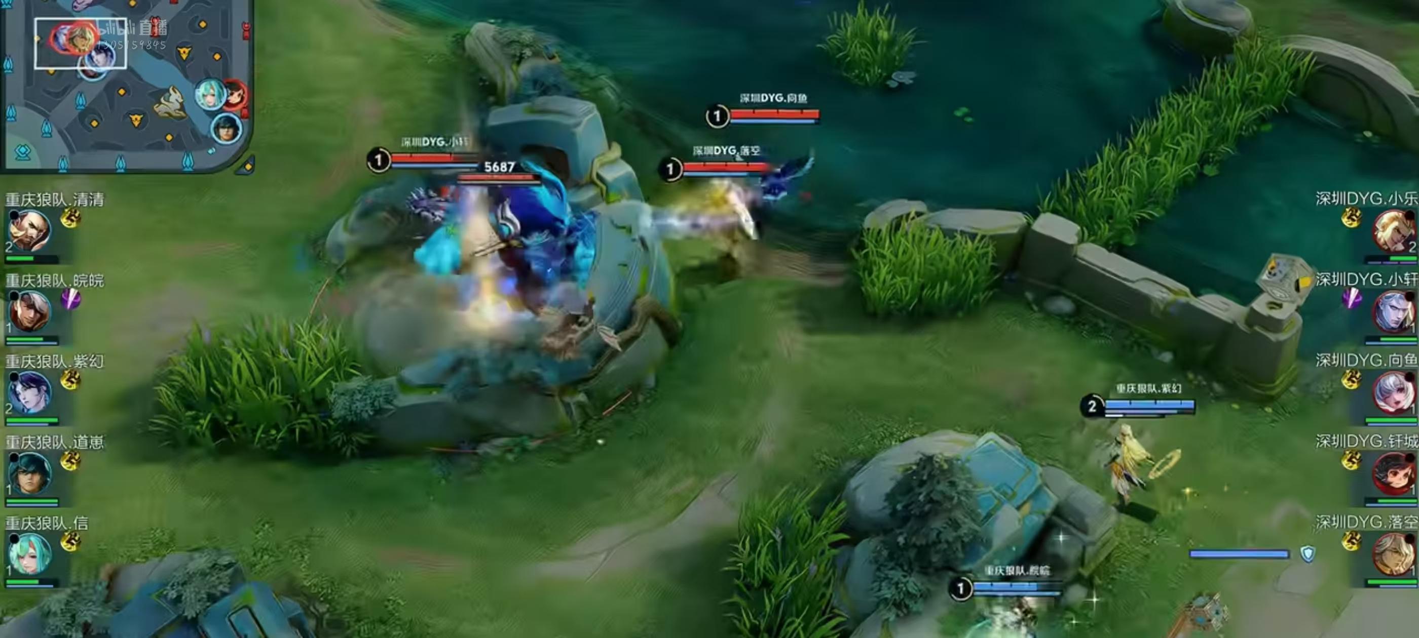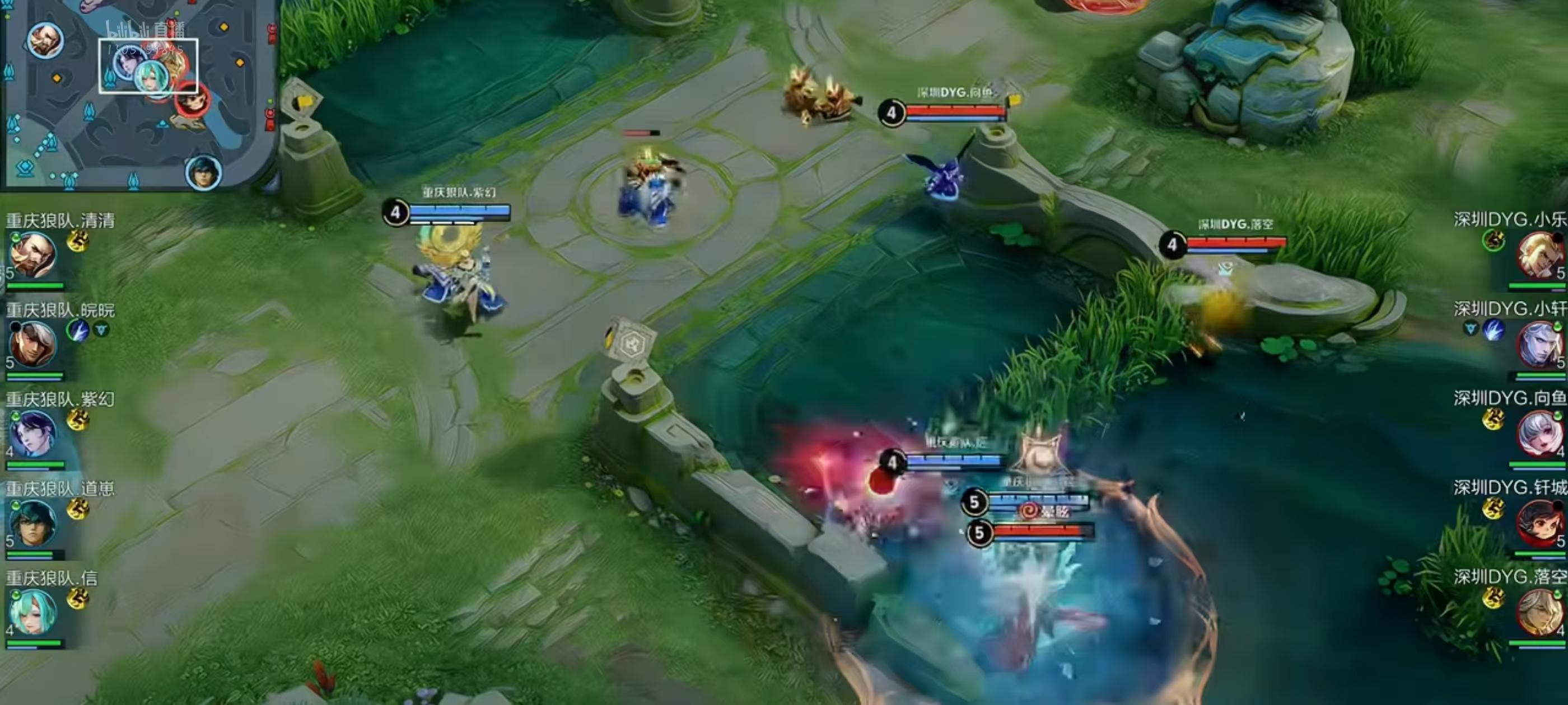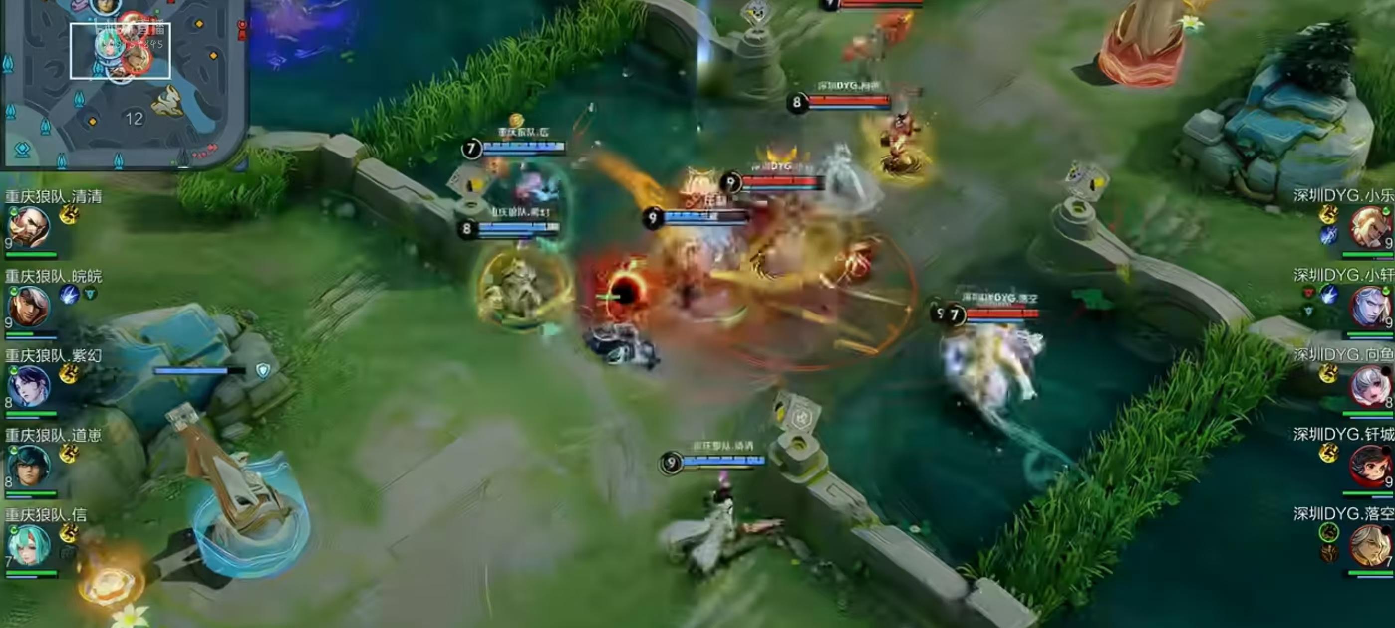 7分10秒,DYG主动求战,钎城李元芳四环爆炸击杀皖皖