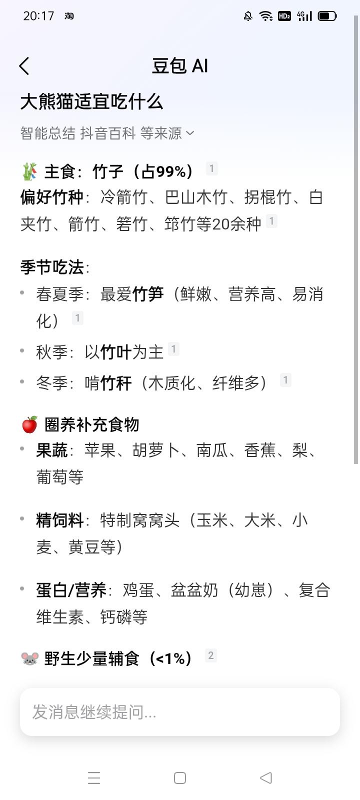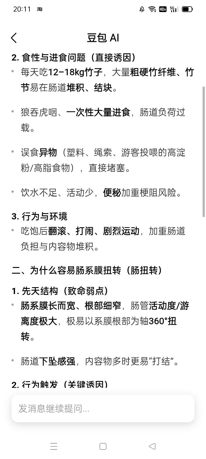 杭州两天相继死亡两只大熊猫 相关动物园被进一步调查 *真是晴天霹雳!2月9、10两天,大熊猫半半(16年生) 香果(20年生)分别死于杭州野生动物世界及杭州动物园! 死因是肠梗阻和肠系膜扭转。 中国大熊猫保护中心及杭州林业水利局等部门正在对两家涉事单位进行进一步调查。已经把另外两只大熊猫从杭州运出。 *相关部门的反应措施还算负责任,由此推测杭州两个动物园很可能存在严重问题。 大熊猫尤其是未成年大熊猫罹患肠梗阻和肠系膜扭转的主要原因就是吃了大量的竹竿,消化不了 堵塞肠道。这两种急性病的致死率高达60%和100%! 另外大熊猫不好消化淀粉和油脂。 而大熊猫最适宜的食物就是竹笋以及牛奶 南瓜 胡萝卜 鸡蛋 苹果。 显而易见,这些最好的食品比起硬邦邦的竹竿来,是要花一些钱的! 如果有人丧尽天良、克扣大熊猫的合理伙食费用,只提供生硬的 没有多少营养的又难以消化的破竹竿,那么大熊猫肯定凶多吉少!