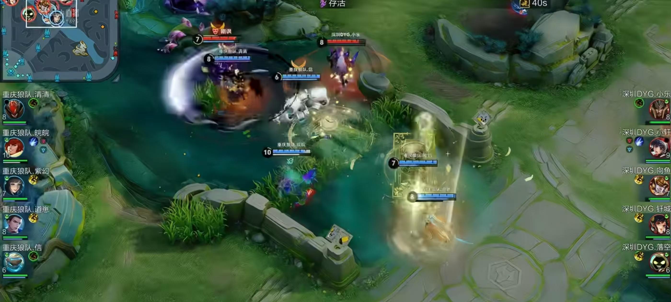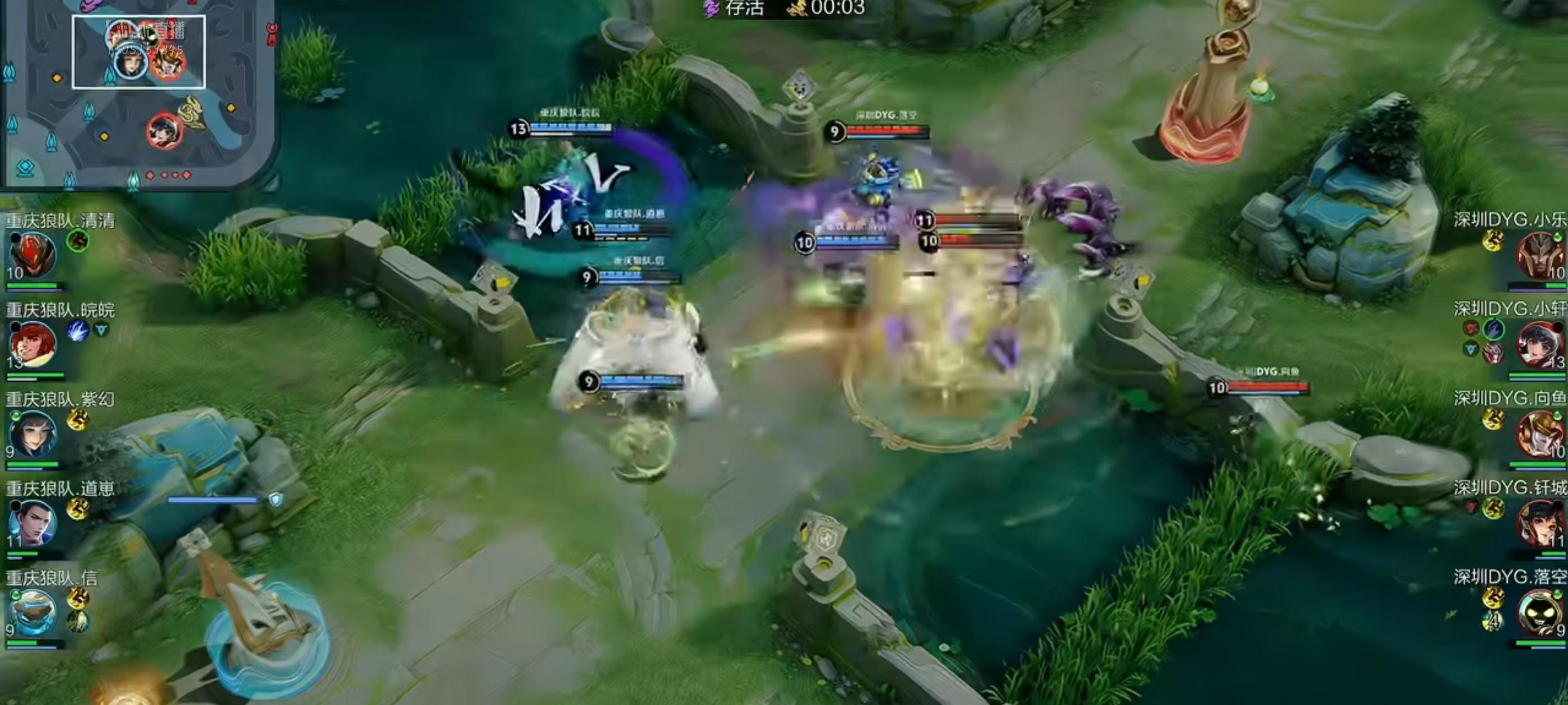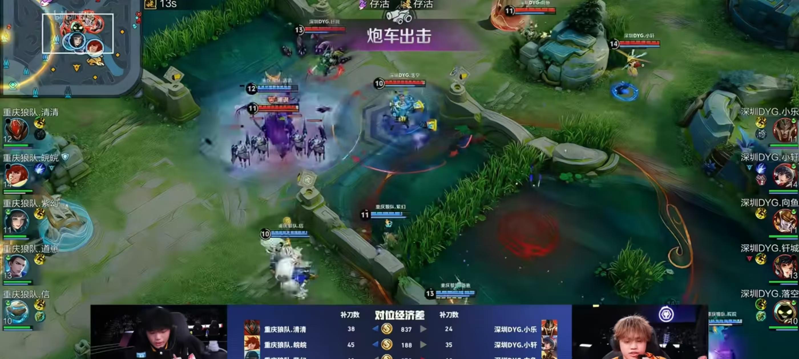 10分37秒,狼队开团但被DYG反打成功,但随后小轩追击过深被道崽操作