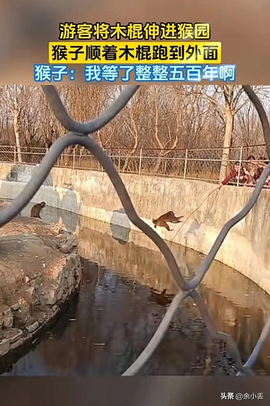 太离谱!游客伸木棍进猴园,猴子直接逃跑! 某景区猴园,一游客竟把长木棍伸进围栏逗猴,没想到猴子抓住机会,顺着木棍直接逃出园区,现场游客都看懵了! 文明观赏真的很重要,随意投喂、逗弄动物,既危险又容易出意外。 你觉得这事该怪游客,还是园区管理有问题? 景区不文明行为 猴子逃跑