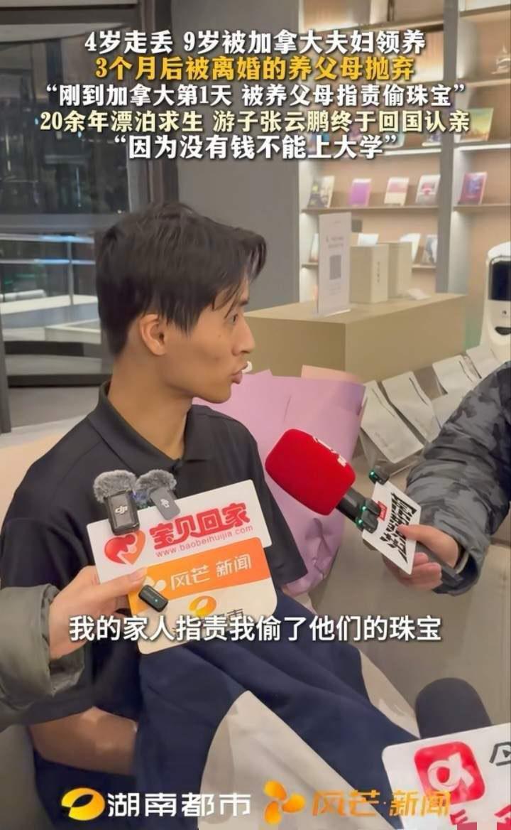走失25年漂洋过海回国认亲的张云鹏的身形眼神牙齿还有那句3q,都说明了他这些年的处境,没有被好好照顾,在社会是边缘群体。他的眼神和动作看起来是长期生活在紧张情绪下的,身形和牙齿皮肤看起来就是从小缺乏营养的,真的挺可怜的,2 9岁,看起来像40多岁,看起来很沧桑。 时间追星溯到24年前,2001年,当时年仅4岁的小云鹏因爸爸在高墙内,其妈妈拜托其大伯照顾他,其大伯在沈阳火车站去给他买冰淇淋,等大伯买回冰淇淋时,小云鹏却不见了。他站里站外到处都找了,也没找到。 幸运的是走失的小云鹏被福利院收养。不幸的是9岁的他被加拿大的一对夫妇领养,命运发生了翻天覆地的变化。 他刚被领养,养父母就冤枉他,说他偷了他们的珠宝,他们在一起生活不到三个月,他就被遗弃,之后在寄宿家庭生活。 他要是没有被领养,一直在福利院那他现在应该有稳定的工作和家庭。对福利院的孩子帮扶,国家有政策倾斜的,很多福利院的孩子过得很好 这孩子太悲惨。四岁丢失怎么度过的?九岁又被抛弃怎么度过呢?特别是到了异国他乡,孩子不会说外语恐惧害怕饥饿怎么度过的? 这孩子能活下来就已经很不容易了,一个华裔小孩九岁才去到一个完全陌生语言不通的西方国家,还被收养人抛弃沦落到机构里,他的成长过程中肯定饱受歧视艰辛,没有父母家庭的妥善照顾和保护,也不可能有好的受教育机会,他能活在西方世界里自食其力已经是很艰难了! 走失25年还能找回来真的太不容易了,感谢志愿者的帮助,他一落地,志愿者特意给他叫了两份水饺外卖,(东北特色的酸菜猪肉水饺与猪肉大葱水饺)让他未与亲人团聚却提前感受家乡味道。这才是最温暖的人间烟火!跨越万里归乡,第一顿饺子暖到心底。东北话一学就会,筷子从未放下,这就是刻在骨子里的中国情。 太可怜了,回国好好吃饭,吃胖点。 他会英语,考个教资,教小孩子口语,应该差不了。 看着大冷天他穿着那单薄起球的外套,看着他小心翼翼的样子,这么多年应该没少吃苦跟眼色,真是说不上来的感觉的难受, 可怜的孩子 那么小就承受那么多磨难和伤害 好可怜的孩子!希望他能尽早寻回亲人,也希望他的亲人不要嫌弃他不是富翁不是学霸,毕竟亲情血浓于水啊!希望他原生家庭能给予更多的关爱和温暖。