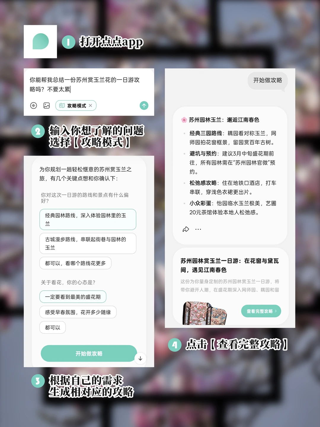 以前出门前翻攻略翻到头秃,现在直接打开点点的攻略模式,让里最会玩的那些“活人”帮你做攻略!它就像跟朋友聊天一样自然,秒变本地通!