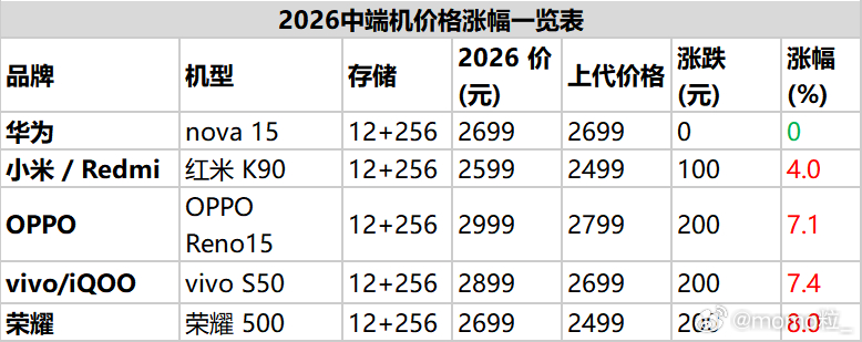 AI疯狂挤压存储产能,芯片成本彻底失控,3月手机圈将迎来史上首次全品类涨价潮!三星S26部分机型全球直涨100美元,各大品牌花式“加价升杯”,套路拉满。