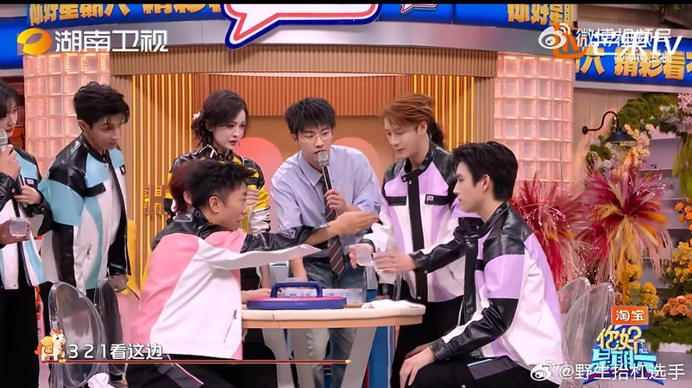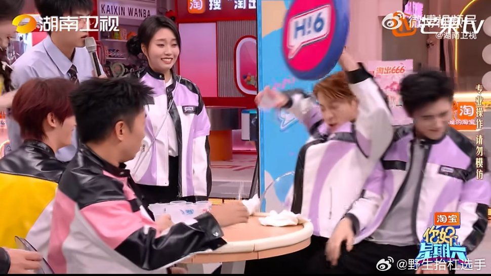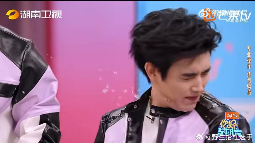 王嘉尔加陈飞宇等于人仰马翻泼水游戏环节,王嘉尔和陈飞宇连番失利,被水泼到双双倒地,躺地对视的模样笑翻了你好星期六