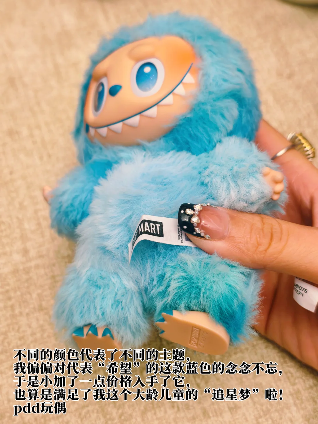 作为我跟风的第一个泡泡玛特大ip,labubu的形象是真的长在了我的审美点上。不同的颜色代表了不同的主题,我偏偏对代表“希望”的这款蓝色的念念不忘,于是小加了一点价格入手了它,也算是满足了我这个大龄儿童的“追星梦”啦!