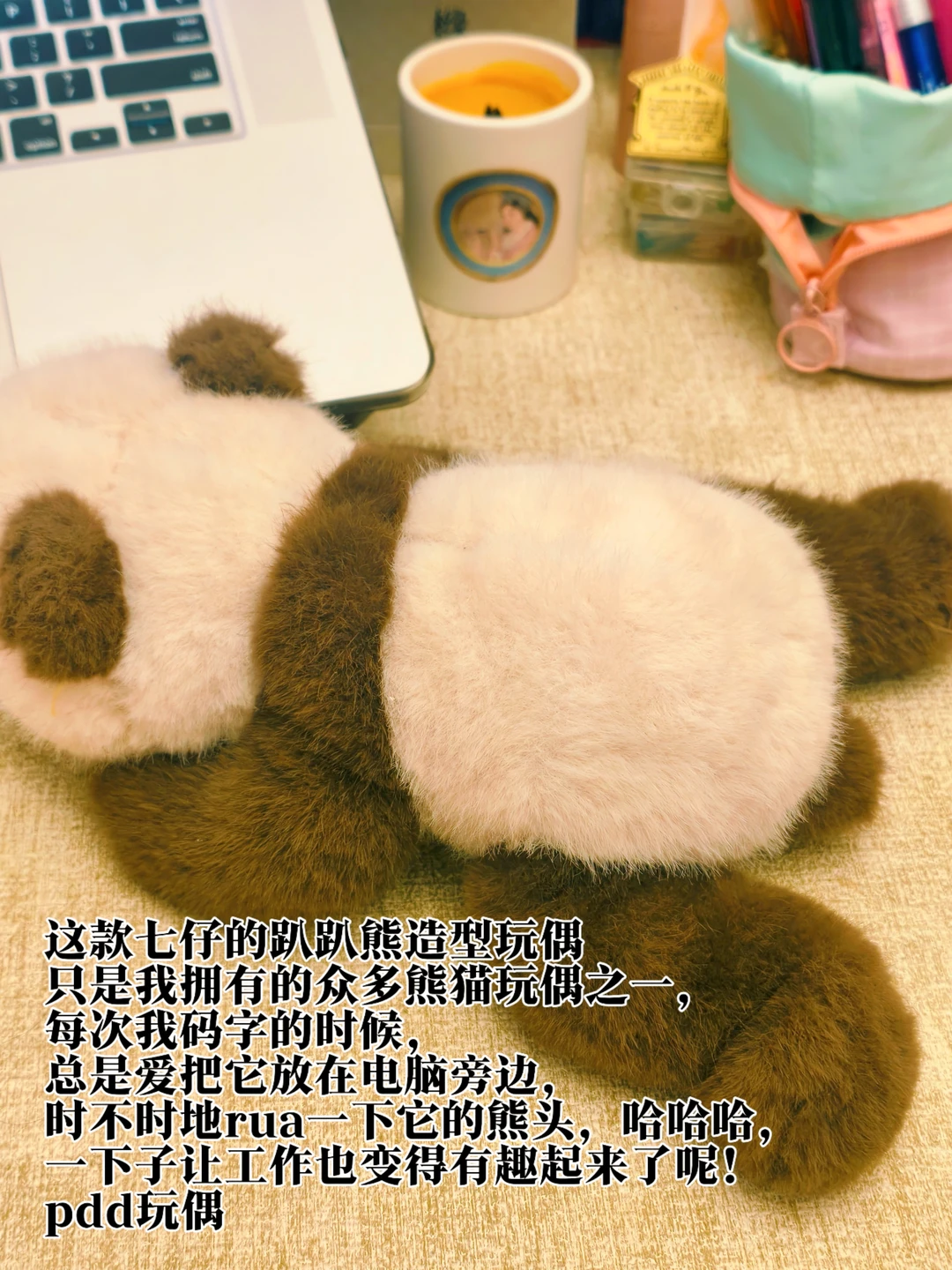 要问我最喜欢什么东西,那必须是大熊猫,没有第二个答案!对各个动物园的顶流熊猫那简直是如数家珍,这款七仔的趴趴熊造型玩偶只是我拥有的众多熊猫玩偶之一,每次我码字的时候,总是爱把它放在电脑旁边,时不时地rua一下它的熊头,哈哈哈,一下子让工作也变得有趣起来了呢!