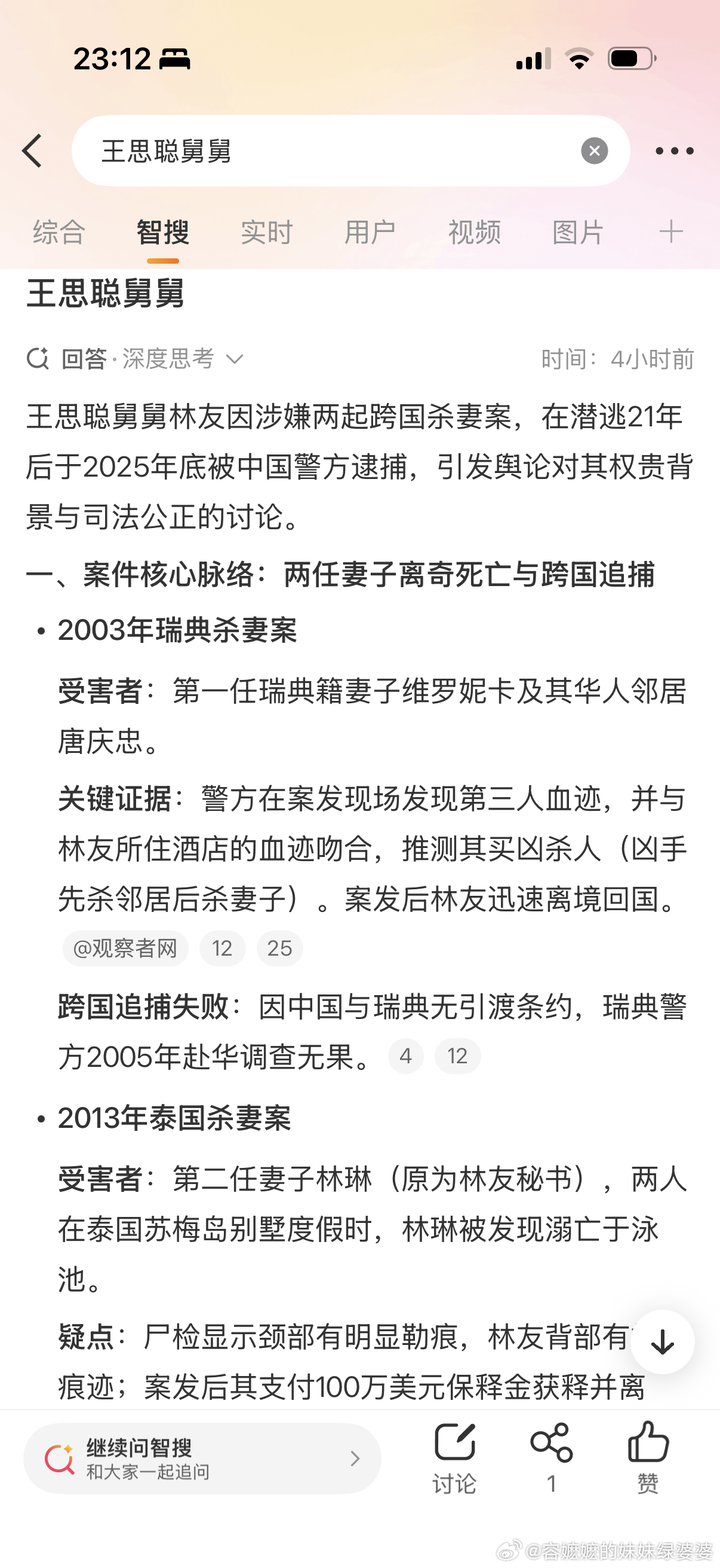 刚刚看到网友留言说,王思聪舅舅被抓了。一惊,当年可是吃过这个瓜的。一直留在心里一个!?就去搜索。没想到根据消息表达,确有其事,在2025年10月中国警方抓获了疑似卷入2起杀妻案的消息……