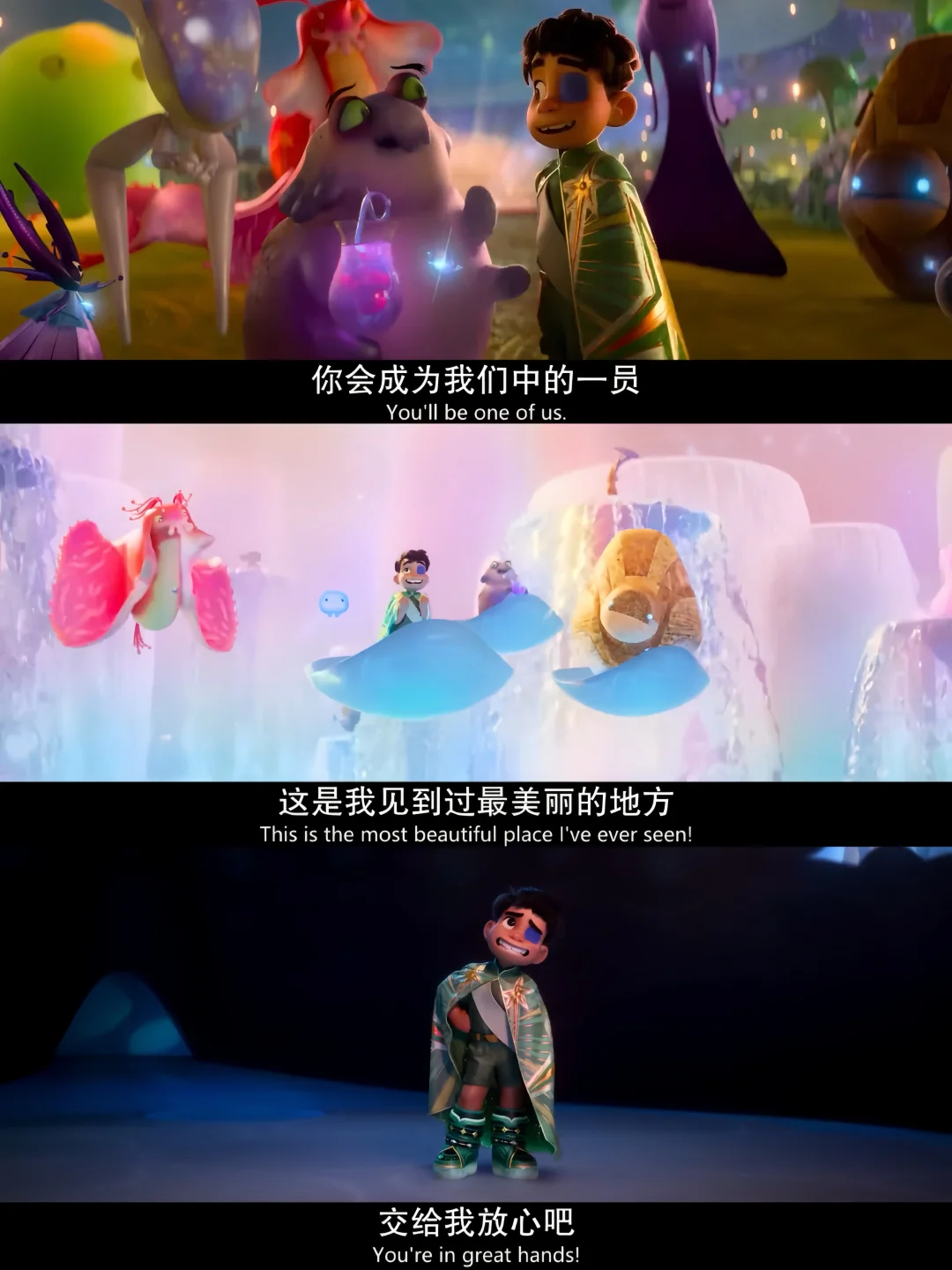 ✅家人们,皮克斯一出手,就知有没有,想象力直接拉满,绚丽的外星世界每一帧都能当壁纸。主角埃利奥从孤独小孩成长为地球代表,和外星生物的互动超级有爱 ,笑料十足又不乏温情。小格和他爹的故事直接把我看哭,亲情线狠狠拿捏!!