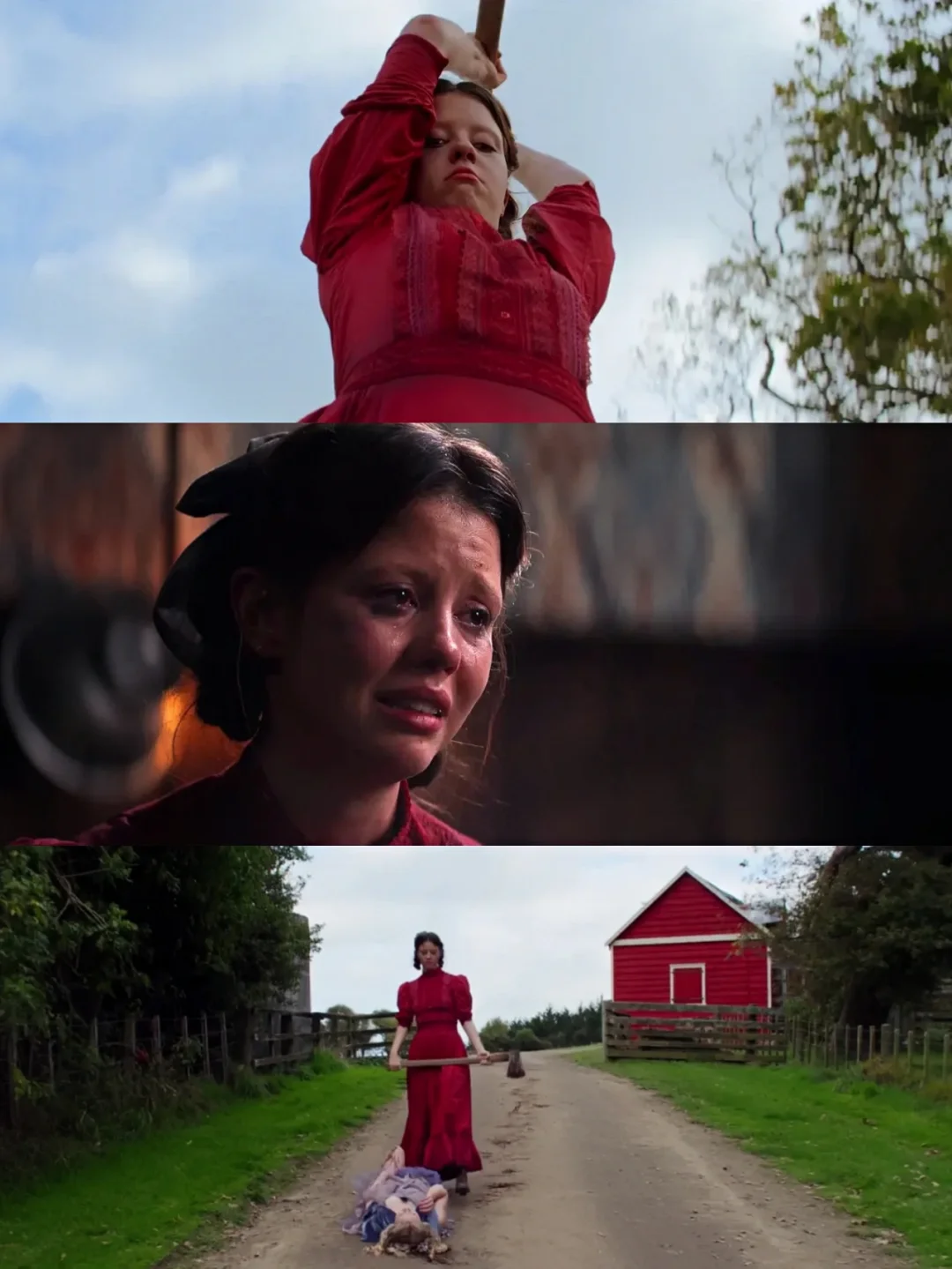 影片中米娅·高斯无论是人物性格的拿捏,还是对于角色内心的把握都堪称教科书级别。贯穿始终的癫狂特性从「杀鹅」到「稻草人之舞」,从「钢叉猎男」到九分钟精彩的「内心独白」,所有的恐惧不是靠一惊一乍式的人为杜撰而是真正的发自心底。