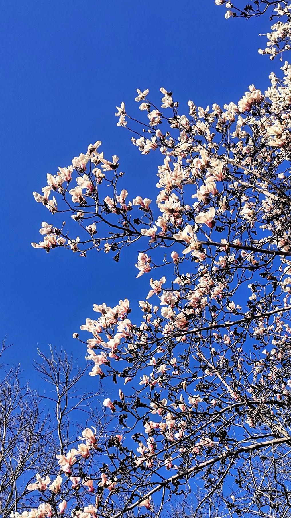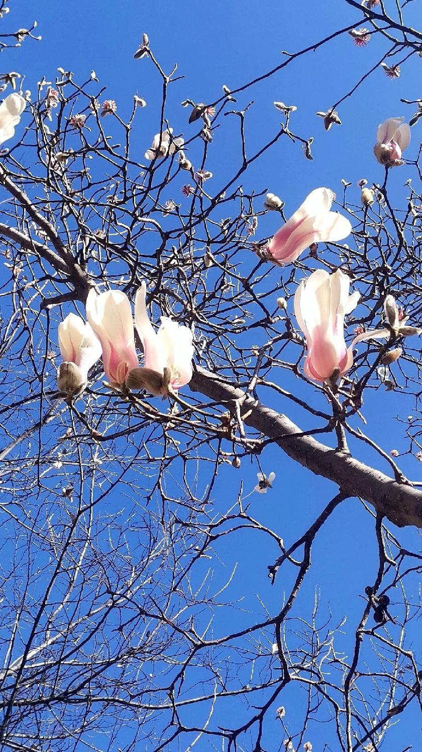 一枝玉白映蓝天, 万盏冰花凌春寒。 风来幽香送尘世, 花开季首盈一年。