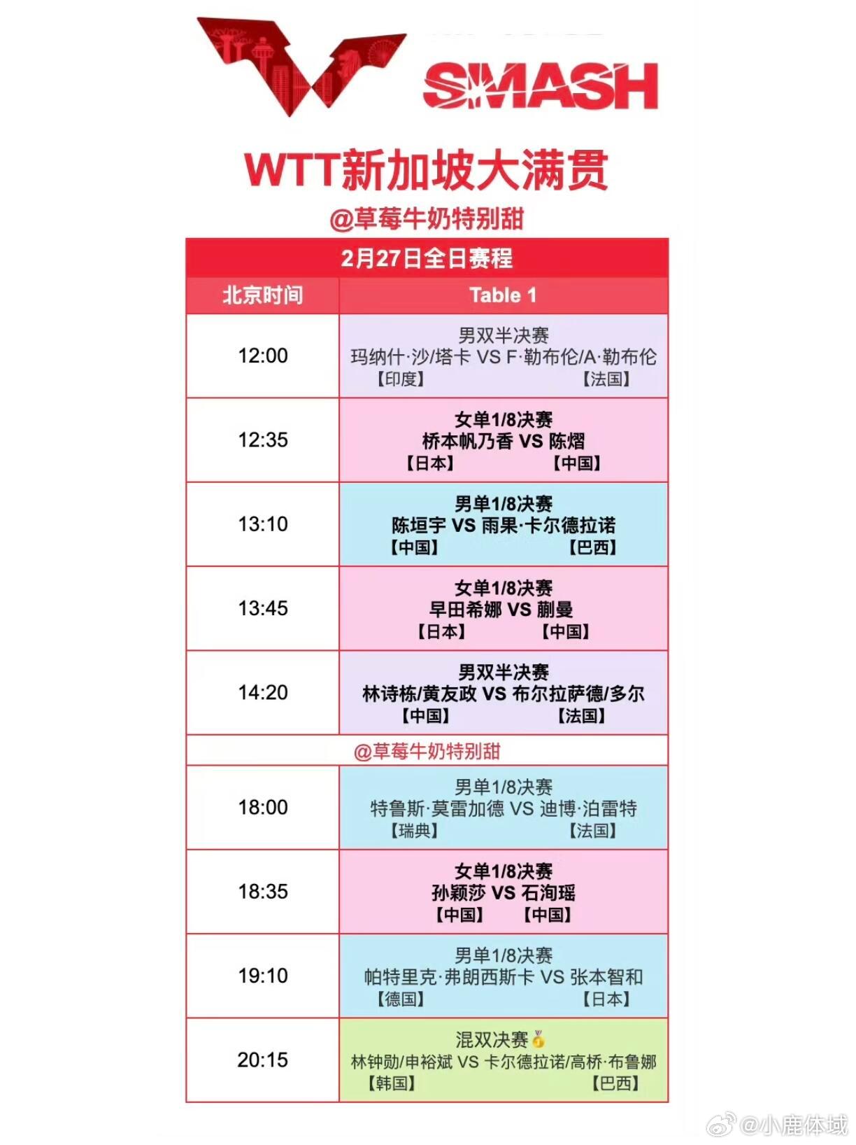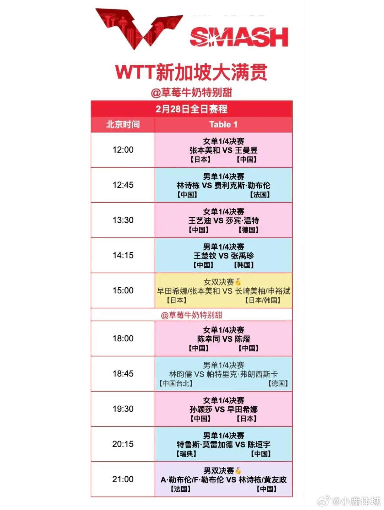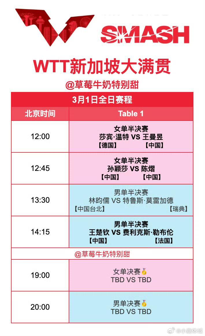 国乒新加坡大满贯决赛日赛程2026WTT新加坡大满贯赛程表更新ing3.1已更新cr:草莓牛奶特别甜 🏓又陪伴我们度过了一个月