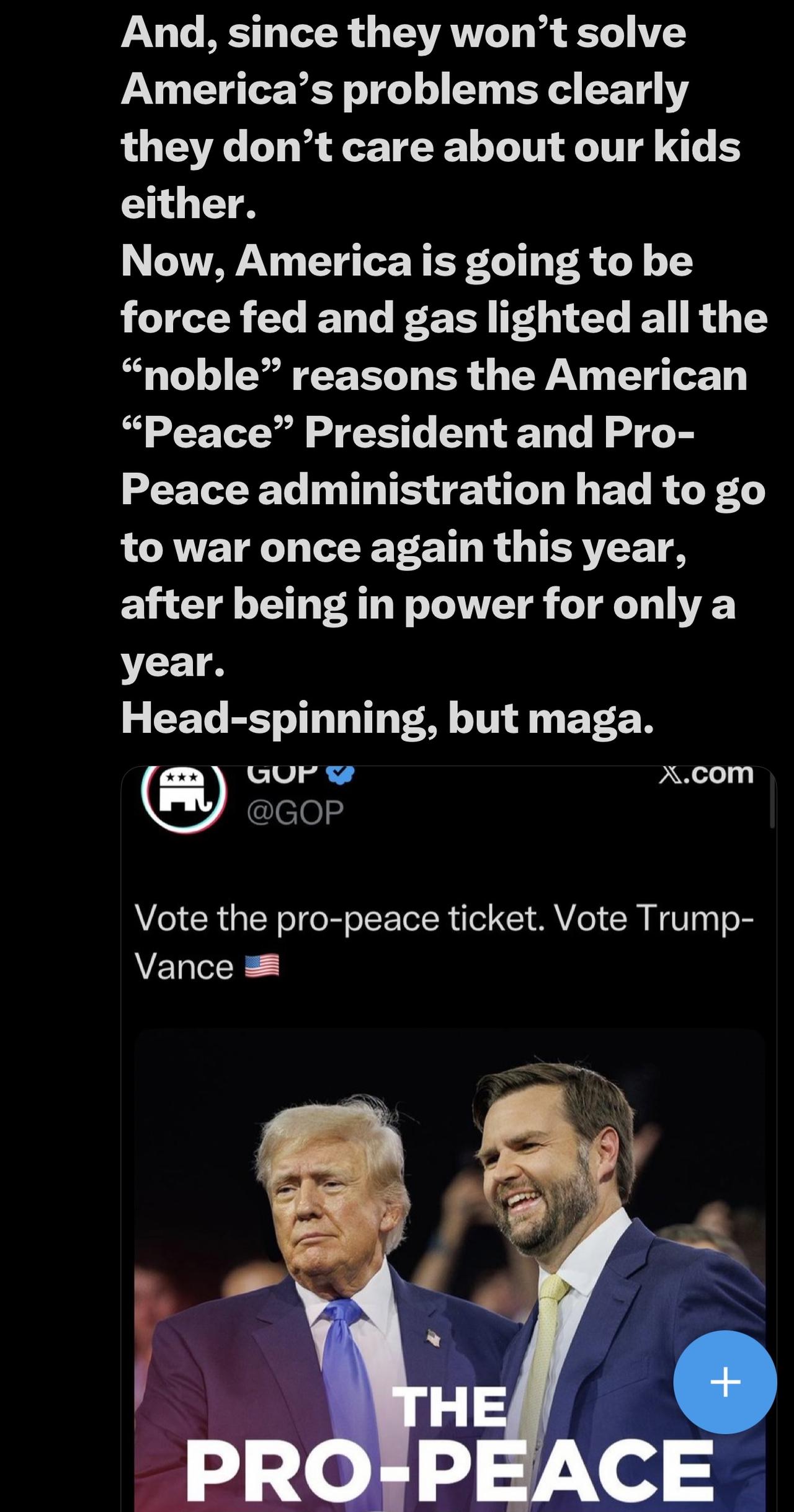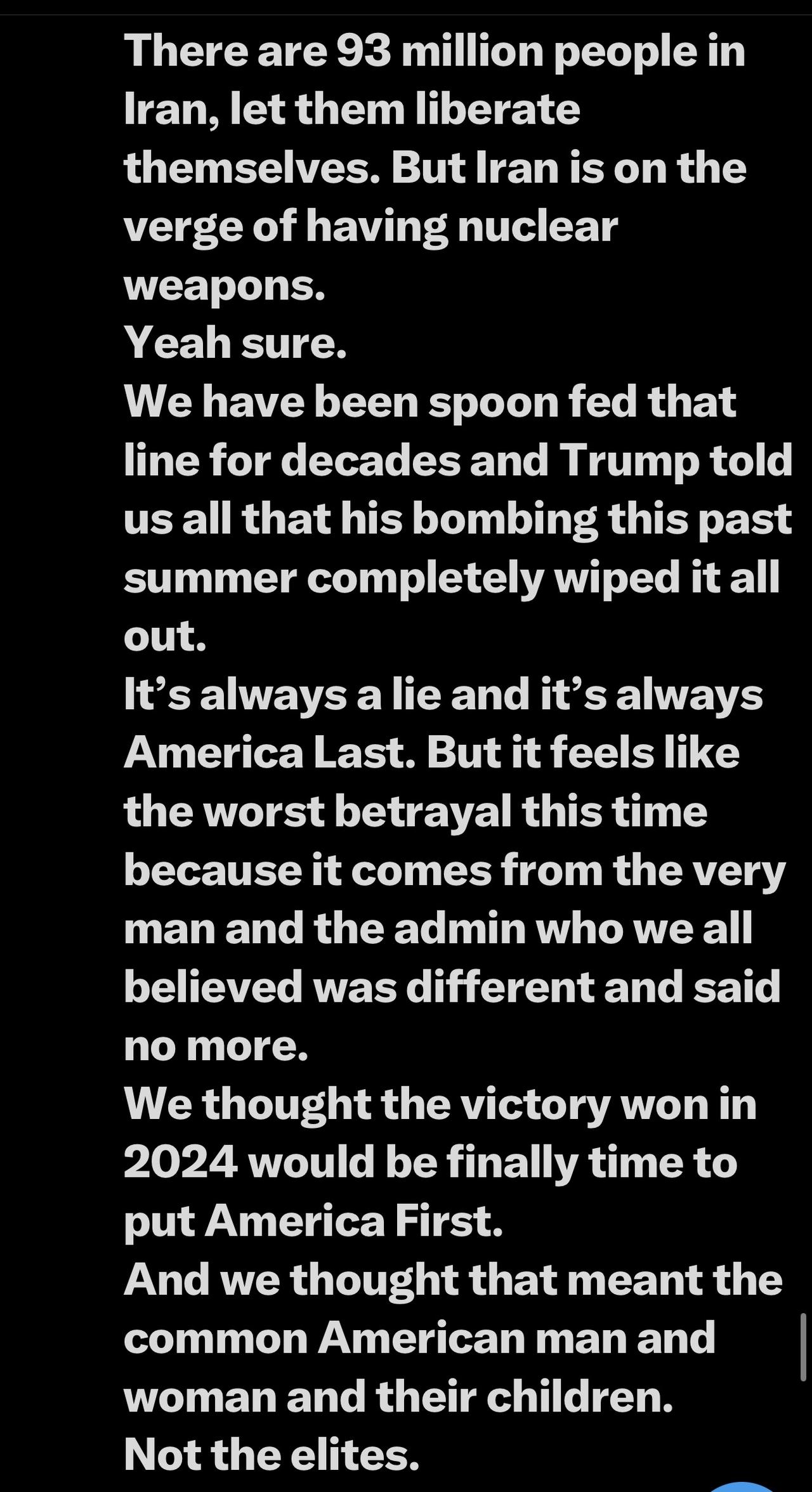 “我们高喊“停止对外战争,停止政权更迭!”我们在一次又一次的集会上、一次又一次的演讲中都这样强调。特朗普、万斯,基本上整个政府都以此为竞选纲领,承诺将美国放在首位,让美国再次伟大。