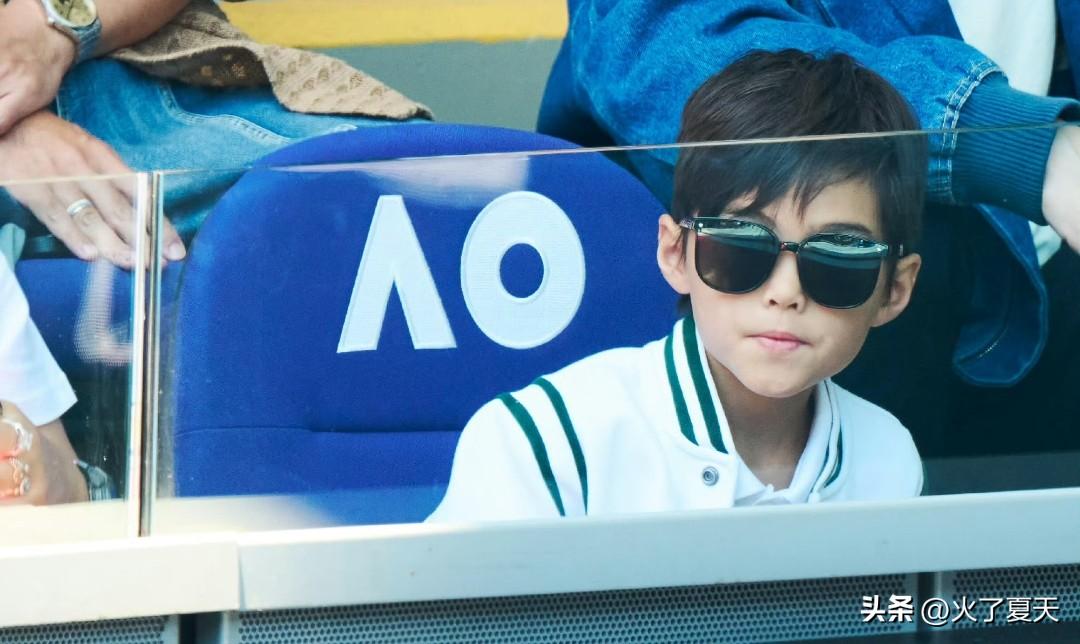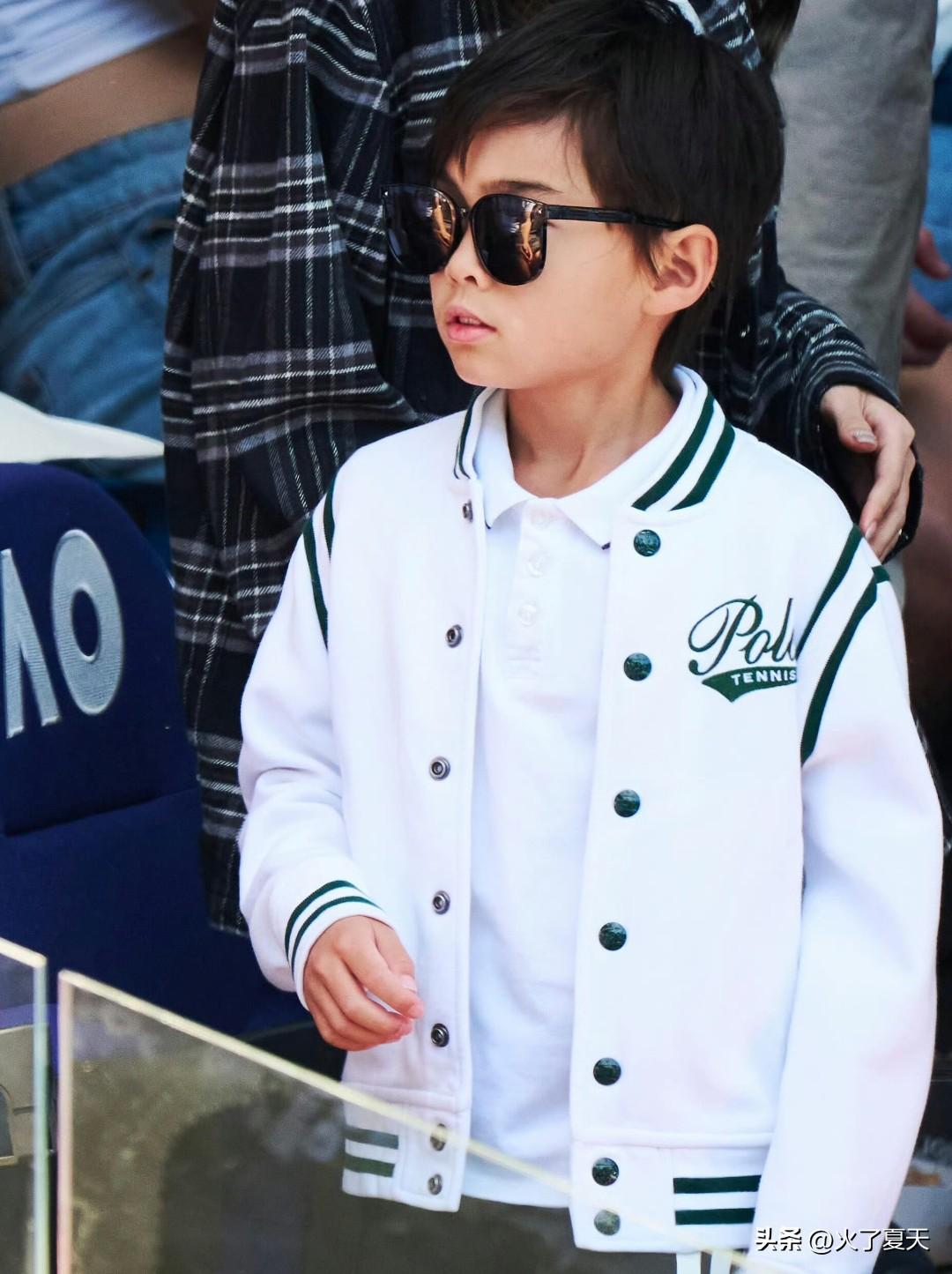 周杰伦昆凌8岁儿子正脸照,像爸又像妈 。