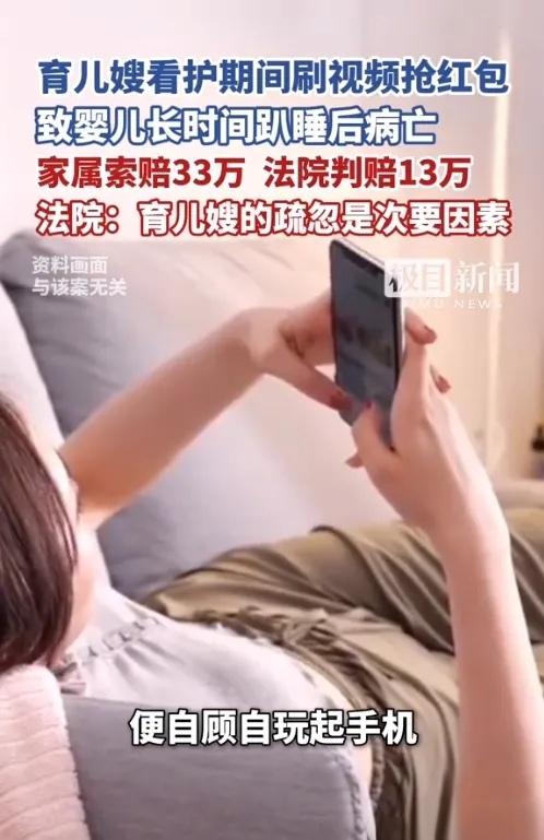 “我就玩会儿手机,孩子就没了!”浙江金华,保姆照顾2个月大婴儿,喂完奶后让孩子趴着,自己转身玩手机抢红包。半小时后回头一看,孩子脸埋在床上,嘴唇发紫没了呼吸。事后保姆坚称:孩子本来就生病,跟我没关系!法院判决结果一出,家属彻底怒了。 浙江金华的蒋先生夫妇,中年得子,对这个来之不易的孩子宝贝得不得了。孩子出生没几天,因为生病加上夫妻俩没有育儿经验,他们咬咬牙花大价钱请了持有育婴师证的保姆张某来照顾。一开始张某确实尽心尽力,蒋先生夫妇觉得自己这钱花得值,对张某也是百分百信任。 可谁能想到,2024年8月14日那个晚上,成了这个家永远无法愈合的伤疤。 那天晚上,张某给孩子喂完奶后,让孩子趴在床上。孩子当时有点感冒,趴久了不舒服,张某盯着看了一会儿,就把孩子翻了过来。可刚过一两分钟,孩子头歪向一边,张某伸手拨正,然后就转过身去,掏出了手机。 刷视频、聊微信、抢红包,张某玩得不亦乐乎。可她不知道的是,就在她沉浸在手机世界里的时候,才两个月大的孩子自己学会了翻身。孩子虽然翻过来了,但头部还没力气长时间立起来,抬了一会儿头,整个脸就闷在了床上。 孩子挣扎着,可一个两个月大的婴儿能有多大力气?他的挣扎越来越弱,最终一动不动。 半小时后,张某终于放下手机回头查看,这一看吓得魂飞魄散——孩子脸埋在床单上,嘴唇已经青紫,没了呼吸。她赶紧叫救护车,通知蒋先生夫妇。可医生拼尽全力,也没能把这个小生命抢救回来。 蒋先生夫妇赶到医院时,等来的只有孩子死亡的通知。那种撕心裂肺的痛,没当过父母的人根本体会不了。 事后,张某掏了3万块钱,说是人道主义补偿。可当蒋先生夫妇追究责任时,张某却坚称:“孩子本来就感冒生病,死亡跟我没关系,谁知道是不是病情加重导致的?” 这话一出,网友彻底炸了锅。“这叫疏忽?这就是谋杀!”“这种人怎么拿到的育婴师证?保姆行业门槛这么低吗?”“半小时啊,你哪怕回头看一眼呢!” 蒋先生夫妇把张某告上法庭,索赔各项损失33万余元。他们请了律师,想要为孩子讨个公道。 可法院的判决,让所有人都没想到。 法院经过调查认为,张某的行为不构成故意犯罪。理由是她发现孩子异常后立即叫了救护车,履行了积极救助的义务,主观上没有想要孩子死亡的故意。这个说法,在法律上站得住脚,可感情上让家属难以接受。 但在民事侵权责任上,法院认定张某确实存在过错。《民法典》第1165条规定,行为人因过错侵害他人民事权益造成损害的,应当承担侵权责任。 法院认为,张某作为持有育婴师证的专业保姆,应当预见到自己玩手机不看护可能带来的风险,却因为玩手机疏忽大意,没有尽到看护义务。这个过错,和孩子死亡之间存在因果关系。 但法院同时认定,孩子死亡的主要原因是自身疾病所致,张某的疏忽大意是次要责任。最终判决张某承担10%的赔偿责任,扣除已经支付的3万元人道主义补偿,还需赔偿蒋先生夫妇13万余元。也就是说,总共赔16万多点。 这个判决结果传到网上,网友们又吵翻了。有人说:“一条命就值16万?”也有人分析:“法律上讲,确实很难追究刑责,主要原因是自身疾病。”还有当妈的网友留言:“别说半小时,我娃两个月时,我上厕所都抱着,生怕出一点事。” 从法律角度解释一下,为什么不能判保姆坐牢。过失致人死亡罪要求行为人的过失与死亡结果存在主要因果关系。但法院调查认为,孩子死亡的主要原因是自身疾病,张某的看护不当是次要因素。因此,只能在民事赔偿层面追责。 一个两个月大的婴儿,还没好好看看这个世界,就这样走了。蒋先生夫妇中年得子又失去,这种痛要用一辈子去消化。而那个玩手机的保姆,拿着育婴师证,收了人家的钱,却没尽到最基本的看护责任。半小时的手机,换来的是一条人命和16万赔偿。可对于失去孩子的家庭来说,多少钱能换回孩子的命? 这事也给所有请保姆的家庭提了个醒:再专业的证书,也抵不过一颗责任心。家里有监控的,没事多看看;家里没监控的,有条件就装一个。不是我们不信任人,而是有些责任,一旦疏忽,就是一辈子的悔恨。 对于这个判决结果,你怎么看?是觉得判轻了,还是认为法院判得有道理?欢迎在评论区留下你的看法。 (本文信息来源:农民日报“三农早餐”)