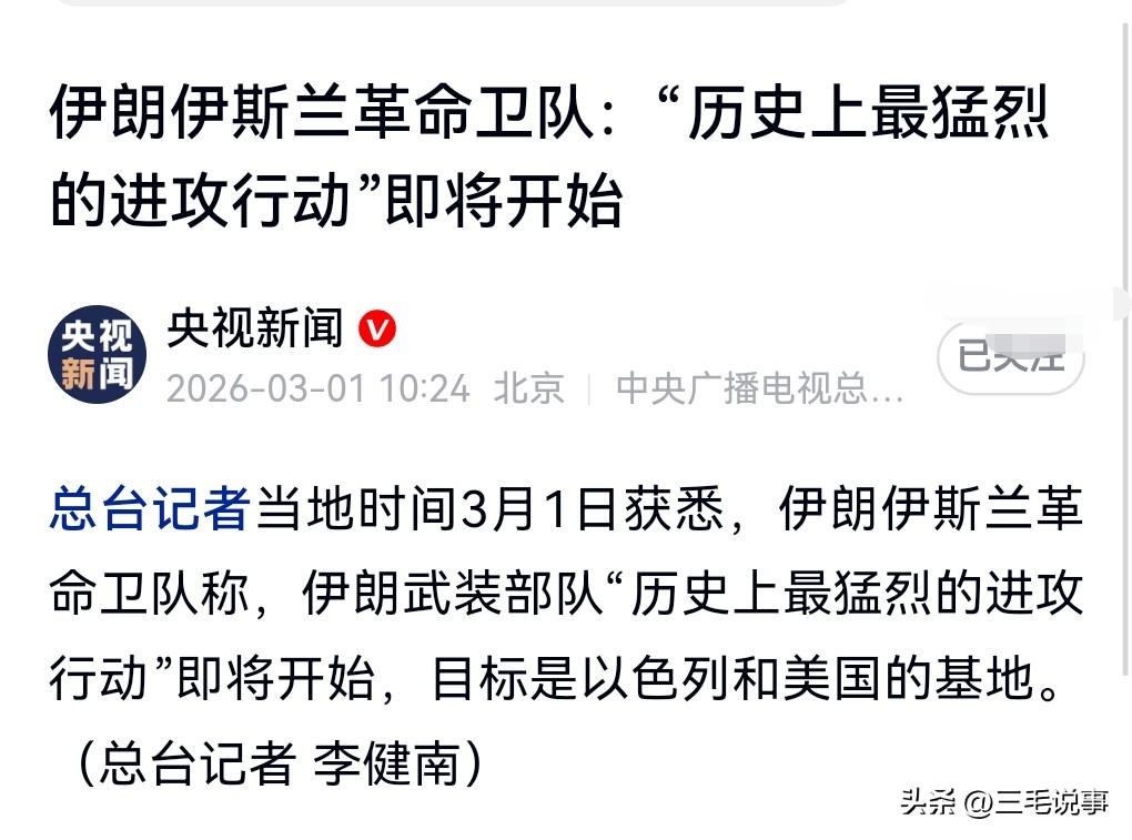 对于美国和以色列对伊朗的侵略,伊朗方面十分的生气。 3月1日热搜,伊朗称历史上最猛烈的进攻行动将开始。 也怪不得伊朗,美国和以色列实在是太没人性了。 在伊朗进行狂轰滥炸。 导致大量人员死亡,并且连哈梅内伊都给炸死了。 这真是让伊朗忍无可忍。