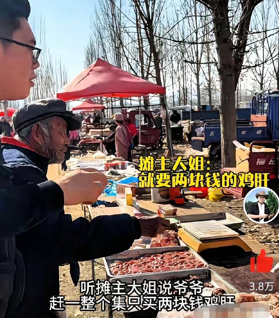 山东大集上,一位88岁的老大爷正在买鸡肝,被善良的小伙儿注意到了,上前细问摊主才知道: 大爷没有老伴儿了,就一个人生活,每次来赶大集,都是只买2块钱的鸡肝,大概是因为鸡肝是荤菜类最便宜的吧。 88岁的高龄,身边没有伴侣陪伴,也没有家人在旁照料,大爷的日子全靠自己撑着。一个人开火、一个人吃饭、一个人打理生活,对高龄老人来说,每一件小事都不轻松。他没有过高的要求,吃饭只求吃饱,荤菜对他而言是奢侈品,挑来选去,只有鸡肝最实惠、最合牙口。 2块钱,放在当下的生活里微不足道,却是大爷固定的伙食开销。他不是挑剔,也不是舍不得吃,是手里的钱必须精打细算。农村不少高龄独居老人,依靠基础保障生活,除去买药、日常零用,能花在吃饭上的钱本就有限,能省一点是一点,是他们一辈子改不了的习惯。 山东大集是周边老人最依赖的生活场所,既能买到平价食材,又能凑个热闹、解解闷。大爷每次来,都安安静静买完就走,不多言语、不添麻烦,把生活的清贫都藏在沉默里。常年守摊的摊主看在眼里,记在心里,每次都会足量称好,用不张扬的方式照顾老人的体面。 主动上前关心的小伙,让人心里一暖。他没有居高临下的同情,也没有刻意的施舍,只是用最平常的态度,留意到了这位不起眼的老人。这份尊重与善意,比直接给钱更有温度,也守住了老人的尊严。 我们习惯了快节奏的消费,一顿外卖、一杯饮品的钱,可能就超过大爷几天的伙食费。很多人没有体会过独居老人的难处,他们操劳一生,到老却只能在最低限度的开销里维持生活。不愿麻烦子女、不愿求助外人,是这代老人最让人心疼的倔强。 农村高龄独居老人的生活状态,值得更多人看见。他们缺的不只是钱,还有陪伴与体谅。社会在不断完善养老保障,各地也在推进针对独居老人的关爱服务,但更多时候,身边人的一句问候、一次伸手,就能给他们带来很大的安慰。 日子清贫不可怕,孤独才最磨人。88岁大爷的2块钱鸡肝,照出了很多普通老人的真实生活,也照出了陌生人之间最珍贵的善意。 各位读者你们怎么看?欢迎在评论区讨论