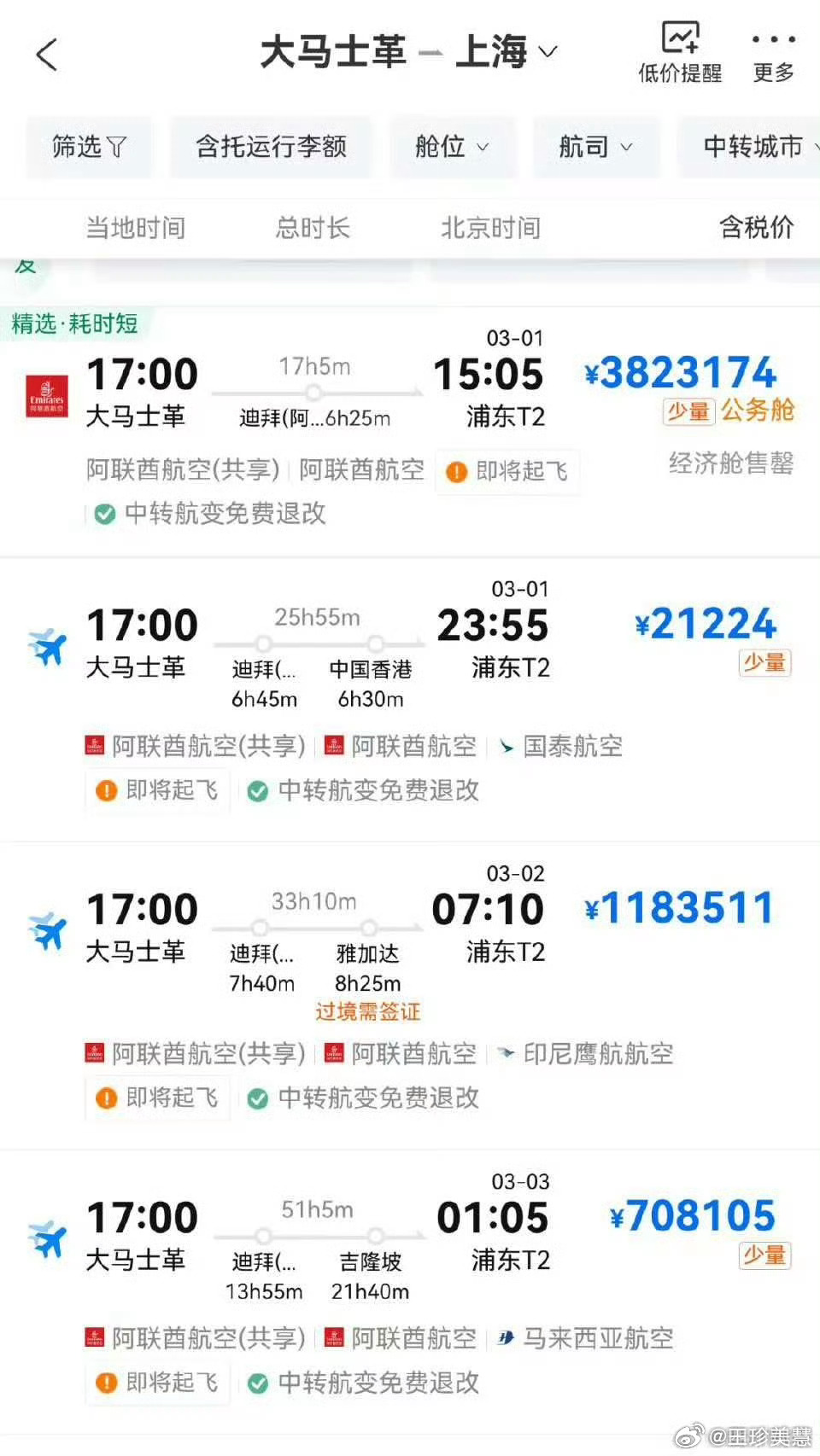 携程回应大马士革到上海机票550万就离谱不知道是什么机制搞成这个票价