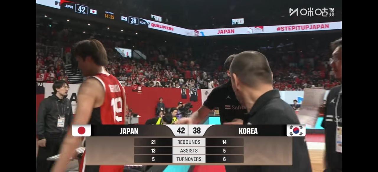 3月1日中午,一场世界杯预选赛,日本男篮上半场42比38领先韩国男篮,比赛悬念还很大呢。 双方的打法有些近似,都以外线为主。韩国队以李贤重和李政铉主攻手,而日本队以富永启生和渡边加上霍金森为主攻。 (回顾此前中国男篮的世预赛,状况百出。2月26日客场打日本,上半时被压着打,首节就11比21落后,不过下半场完成大逆转87比80赢了,拿到首胜。而在去年12月,中国男篮两场都输给韩国,第二场76∶90惨败,上半场才29分,三分28投仅5中。看来男篮世预赛竞争激烈,每支队伍都有状态起伏,这场日本和韩国的下半场,指不定会有啥大反转)。