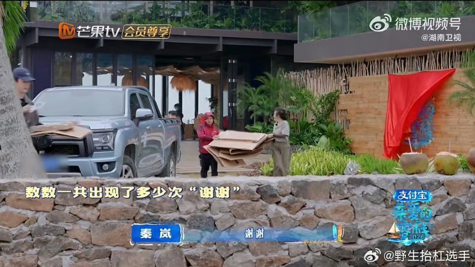 秦岚一分钟说了15句谢谢哇塞!在运走快递纸盒垃圾时,秦岚找来帮手,一分钟连说15