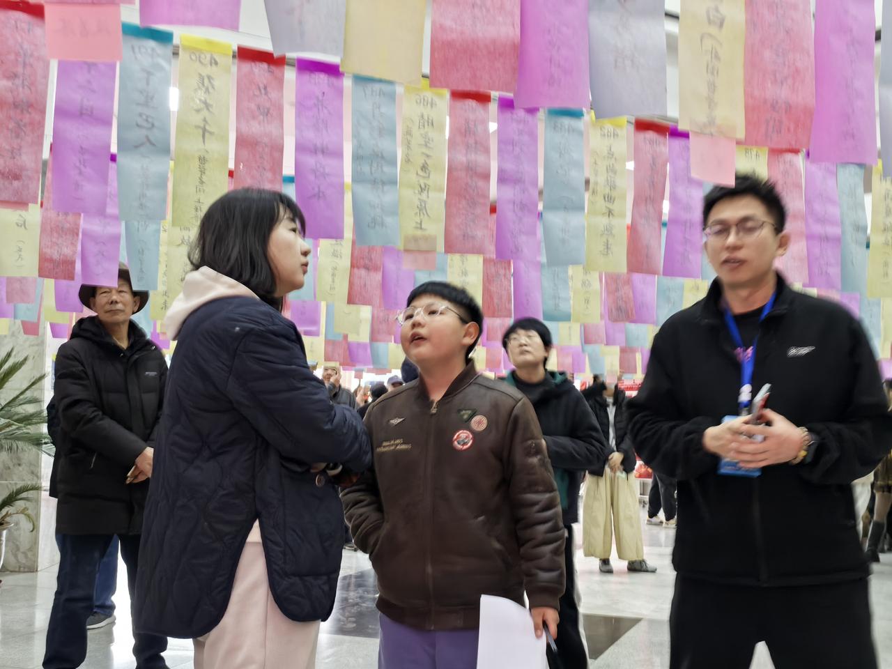 喜迎元宵节—— 兰州图书馆举办猜谜活动 记者:王志俭(穿石)文图 正月十三上午8时许,距离兰州图书馆开馆还有20多分钟时间,可馆前台阶已站满了人群。 时间刚到人们就涌入图书馆,一进门就看到“2026”我们的节日元宵兰州市第四十一届迎春灯谜有奖精彩活动的显眼横幅。大厅内挂满了五彩缤纷的谜语条幅,吸引了男女老少灯谜驻足观看。 至10时许,现场聚满了猜谜读者。一位老者拄着拐杖,对着一幅彩条认真观看琢磨。旁边一位八九岁的小姑娘,也抬头仔细观看条幅。她告诉记者,今天是妈妈带着她一起来的。她是第一次参加猜谜活动,感到非常有趣,且猜谜要有丰富的综合知识。她要向大人们学习,争取明年多猜对几个条幅。 记者观察到,现场参加猜谜活动的有三五成群的朋友,也有一家老少三代同来的。甚至亲密无间的情侣,也窃窃私语对着条幅指点,现场气氛温馨热烈。 市图书馆一名工作人员介绍,元宵节前开展猜谜活动是市图的一项传统文化活动,截至今年已成功举办四十一届,深受迷家和市民们的青睐。看到今天活动来了不少年轻人和小朋友,这让他们感到十分欣慰。这说明猜谜这项传统文化活动,正受到越来越多年轻人的喜爱,这对发扬光大和传承猜谜这项传统文化,是一件非常值得庆幸的事情。