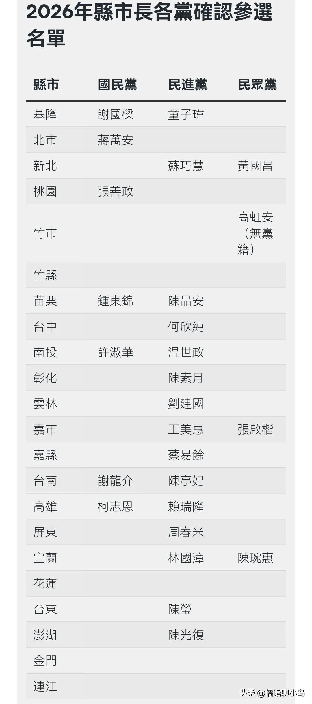 国民党加速布局县市长选举 3月4日将提名云林、花莲、金门参选人 为备战年底的“九合一”选举,中国国民党加快了县市长提名的脚步。据党内人士透露,国民党预计将于3月4日的中常会上,正式通过提名“立委”张嘉郡参选云林县长、“立委”陈玉珍参选金门县长、吉安乡长游淑贞参选花莲县长。 密集敲定人选,聚焦“蓝白合” 此次提名是国民党落实党主席郑丽文此前“3月底前完成九成提名”规划的重要一步。此前,国民党已陆续提名“立委”谢龙介参选台南市长、“立委”柯志恩参选高雄市长、“立委”苏清泉参选屏东县长,以及台东县议长吴秀华参选台东县长。 国民党组发会主委李哲华表示,针对新北市、宜兰县、嘉义市等需进行“蓝白合作”的县市,党部预计在3月11日的中常会上提出国民党参选人名单,后续再与台湾民众党进行整合,以共推最具胜算的人选。据悉,新北市将提名台北市副市长李四川,宜兰县由“立委”吴宗宪出线,嘉义市则提名医师翁寿良。 外界关注整合进程 李哲华强调,在两党县市参选人确定后,将通过“蓝白协商工作小组”讨论具体的整合机制,以决定如何实质合作。这一系列动作显示出国民党正全力整合内部及在野力量,力求在年底选举中取得佳绩。