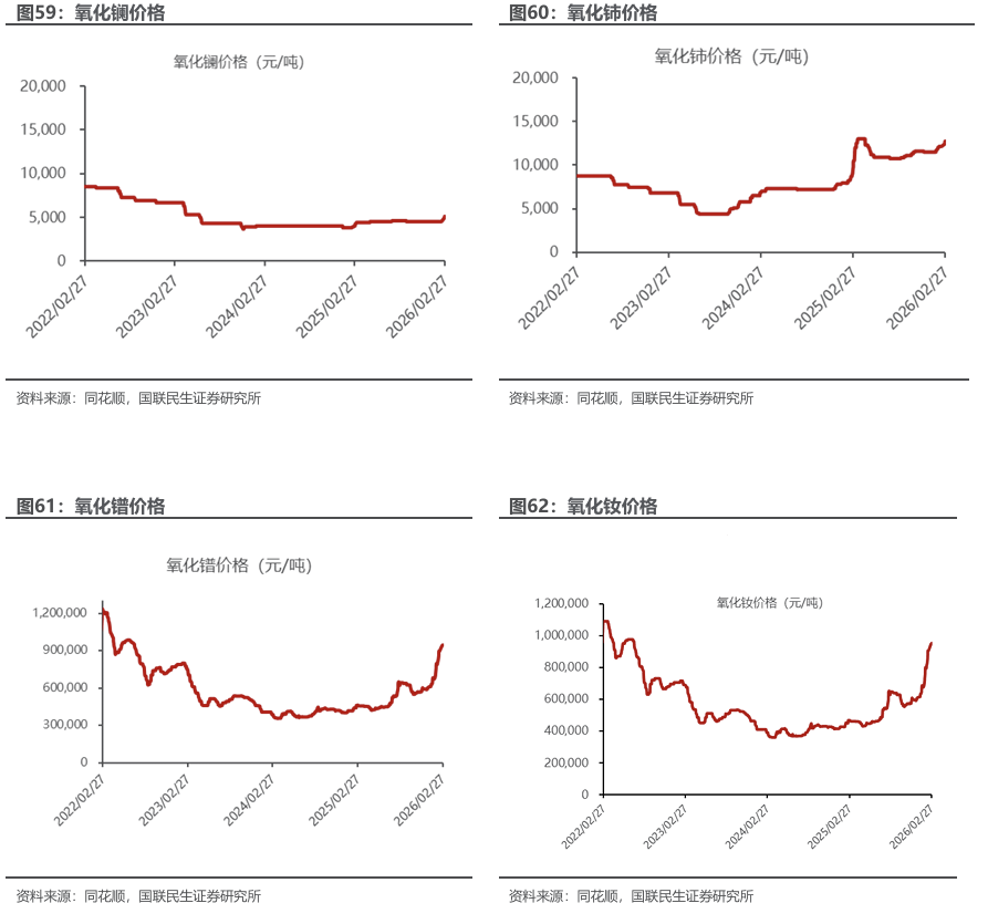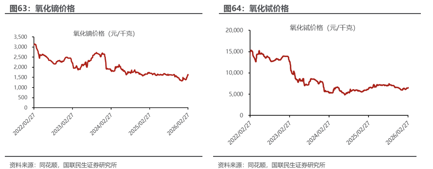 ◾稀土磁材:本周(02/24-02/27)本周稀土市场迎来“开门红”,节后多种产品价格明显上行。氧化镨钕供应持续偏紧,持货商报价坚挺,价格上调至88.5-89万元/吨。下游单采购活动增多,市场交投氛围较节前有所回暖。