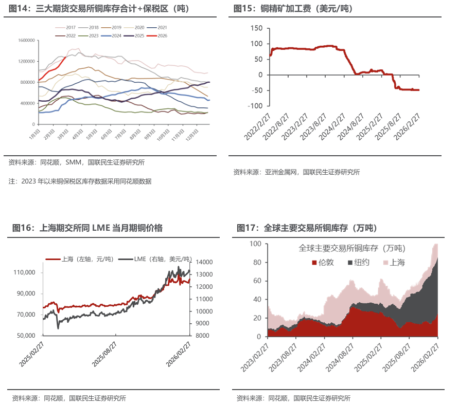 展望下周,当前铜价缺乏单边动力支撑,宏观与基本面未形成共振,预计伦铜仍将波动于12800-13500美元/吨,沪铜波动于98000-104000元/吨。现货方面进入沪铜2603合约交易后市场维持大贴水,库存去化短时间内进度缓慢。预计现货对沪铜当月合约在贴水320元/吨-贴水140元/吨。