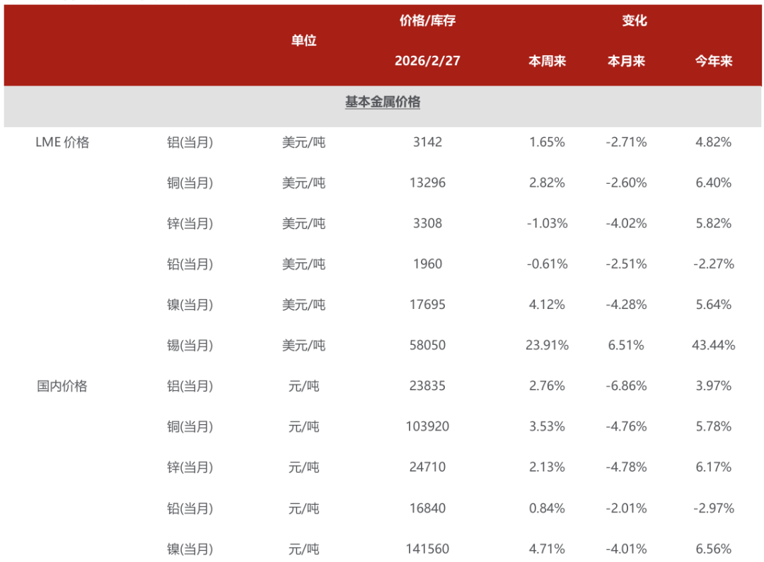 证券研究报告:有色金属周报20260301:美伊军事冲突开启,关键战略资源+贵金属价值提升