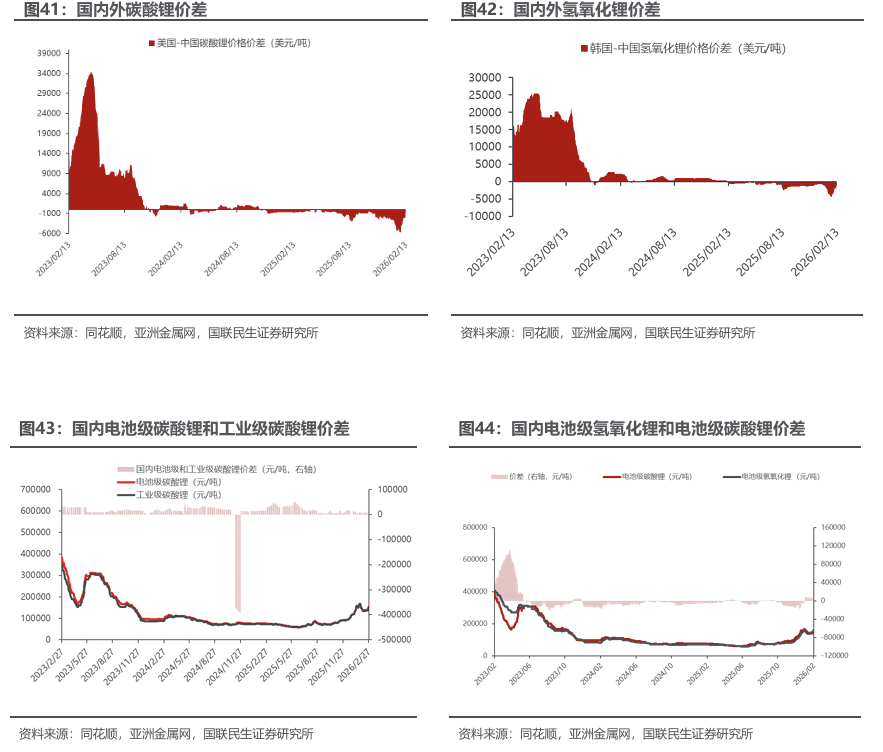 碳酸锂:本周(02/24-02/27)碳酸锂现货价格延续上行趋势,且涨幅有所扩大。推动本周价格加速上行的关键催化因素,源于主要锂资源供应国的突发政策变动。与此同时,现货市场成交延续清淡态势,上下游心态分化明显。上游锂盐厂整体惜售情绪较强,散单出货意愿偏低;下游材料厂则延续谨慎观望,维持刚需采购,多数企业坚持逢低补库策略,追高意愿不强。整体来看,尽管价格快速拉升,但市场询盘及实际成交仍显清淡。