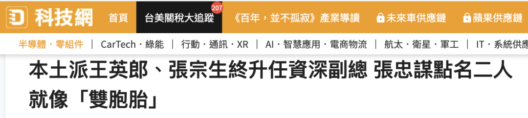 张忠谋点名二人就像「双胞胎」