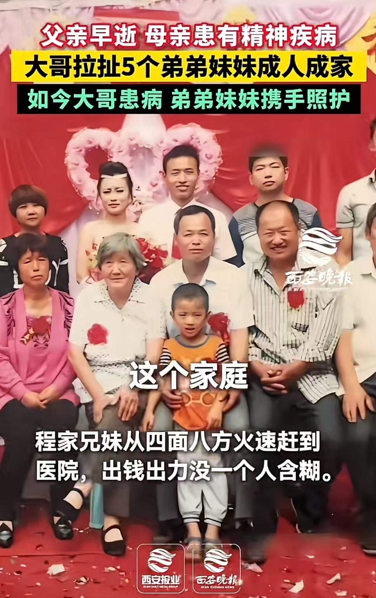 看哭了!父亲早逝,母亲患有精神疾病,大哥拉扯5个弟弟妹妹成人成家,如今大哥患病,弟弟妹妹的做法,令人泪目!网友:大哥用半辈子诠释了‘长兄如父’,弟妹用余生报答了这份恩情。 这是一段关于责任与爱的真实写照,也是对“家”这个字最深刻的诠释。父亲离世,母亲身陷病痛,那个原本应该享受童年、追逐梦想的少年,毅然扛起了整个家庭的重担。大哥没有选择逃避,他用青春和汗水,撑起了五个弟弟妹妹的未来。他的肩膀,承载了太多的苦与泪,也承载了无尽的希望。 时间如流水般匆匆,大哥终于迎来了自己的健康危机。当消息传来,弟弟妹妹们没有一丝犹豫,立刻放下手头的工作,纷纷赶回家中。他们知道,这个曾经为他们遮风挡雨的男人,如今最需要他们的陪伴和支持。弟妹们用行动告诉我们:血浓于水,不仅仅是一个简单的说法,更是一种无可替代的责任与爱。 网友们的评论里充满了感动与敬佩:“这才是真正的‘长兄如父’!”“大哥用一生守护家庭,弟妹用一生回报恩情!”这些话语,像一束光,照亮了我们对亲情的理解和期待。在这个快节奏、讲究效率的时代,这样的故事让人心头一暖,也让我们重新思考:家,究竟意味着什么? 这不仅仅是一个家庭的故事,更是千千万万个普通家庭的缩影。多少人在默默承担着看不见的重担,多少人在困境中依然选择坚强。大哥的付出和弟妹的回报,是对人性最美好的诠释,是社会正能量的真实写照。 你是否也有这样一位“长兄如父”的亲人?你是否也在经历着家庭的风雨?欢迎在评论区分享你的故事,让我们一起为这些无名英雄点赞,也让更多人看到,亲情的力量是如何改变人生,温暖世界的!