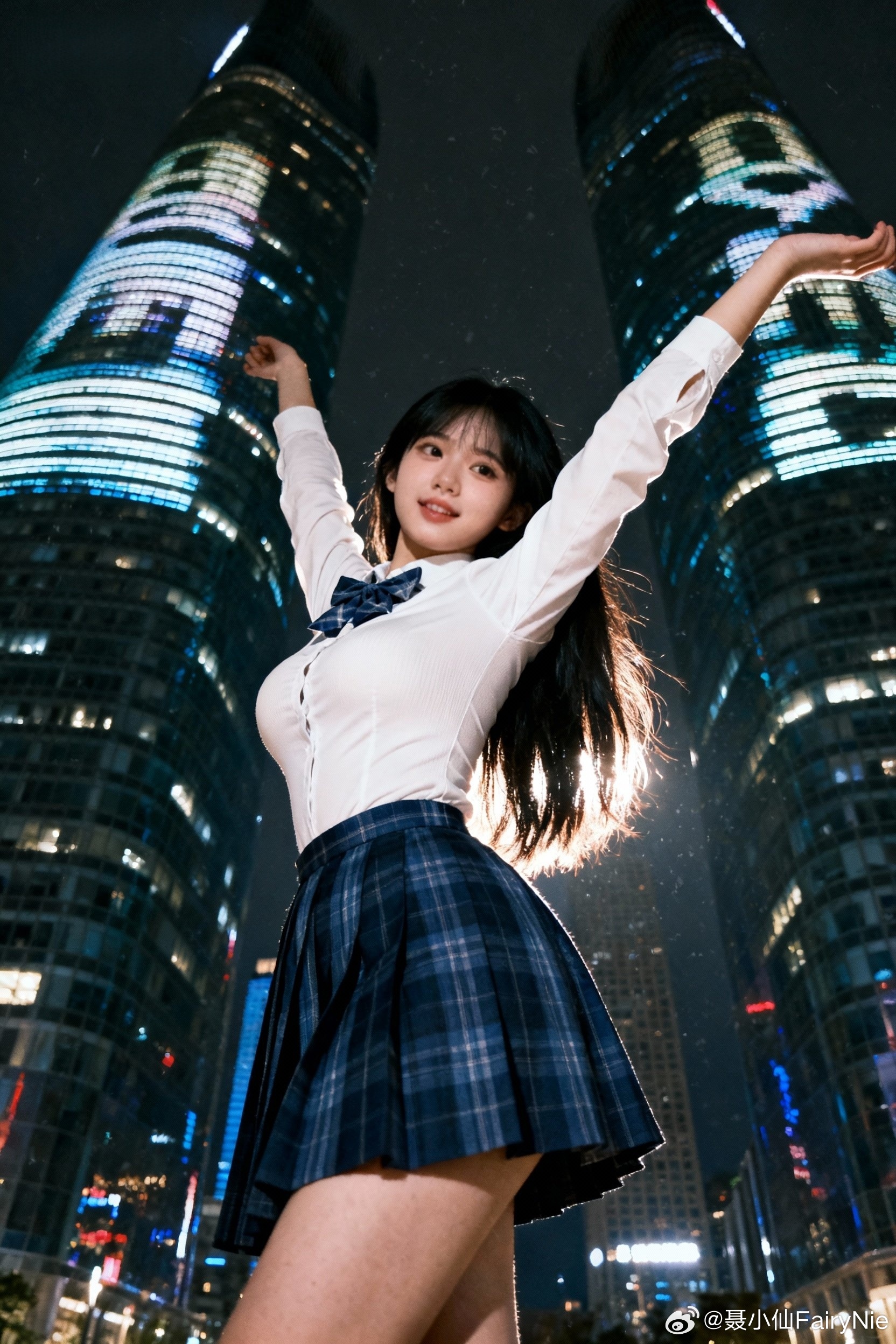 夜景拍照姿势,一定要抬头仰拍!我想我能飞!那是必须的!行摄漫记聂小仙
