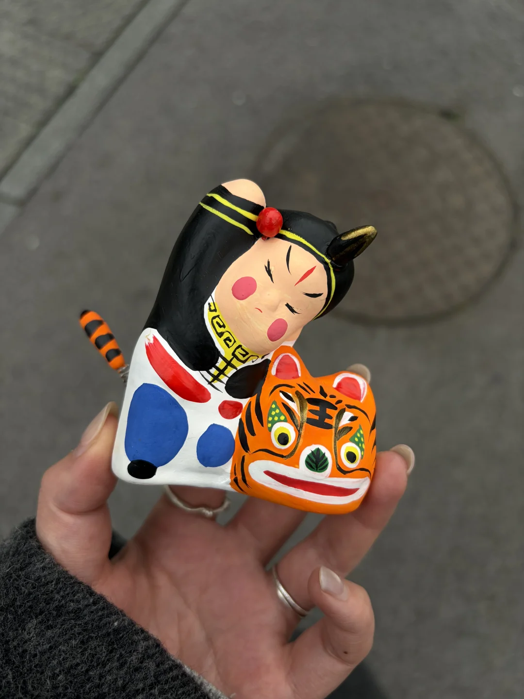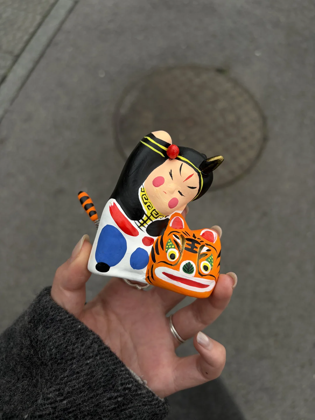 尾巴还能摇摇晃晃 很少看见如此有趣的民俗玩具! 看多了潮玩摆件 来看看传统名著衍生的摆件 武松的脸比较呆萌 像是非常用力在锤向老虎 老虎则是尾巴在颤动 拿起来很有趣~ 每一个都是手工绘画而成 之前断货了一段时间 现在重新补货了[害羞R] 包装替换更适合送人!