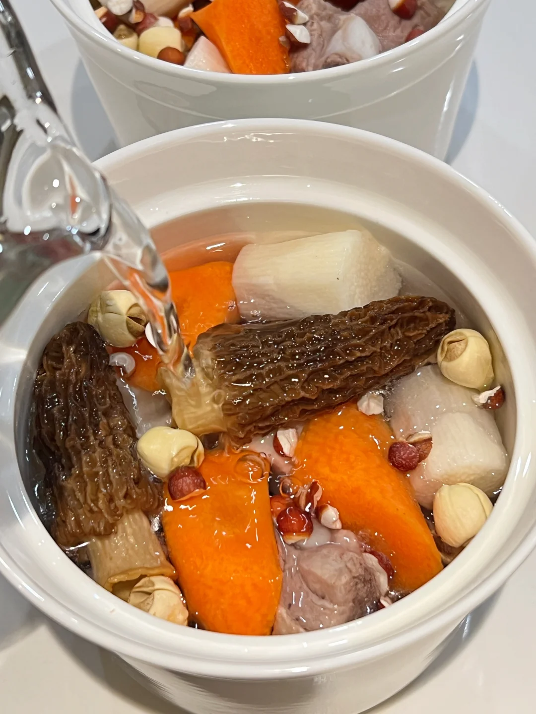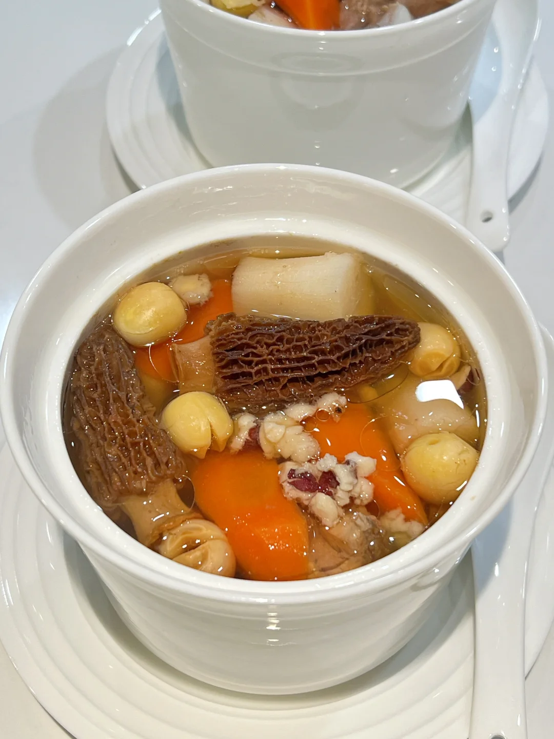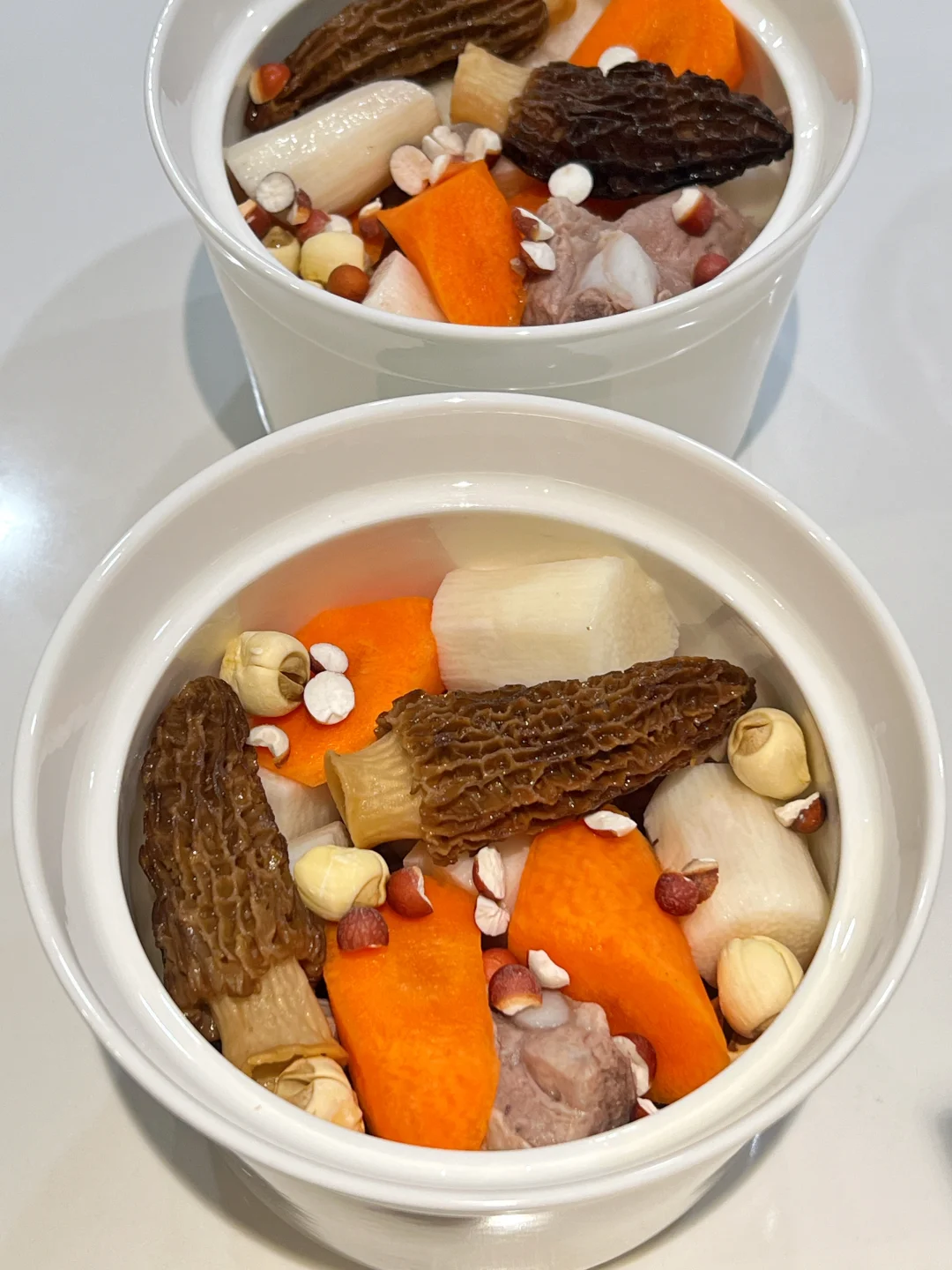 1️⃣羊肚菌,莲子,芡实,浸泡10分钟,洗去泥沙。