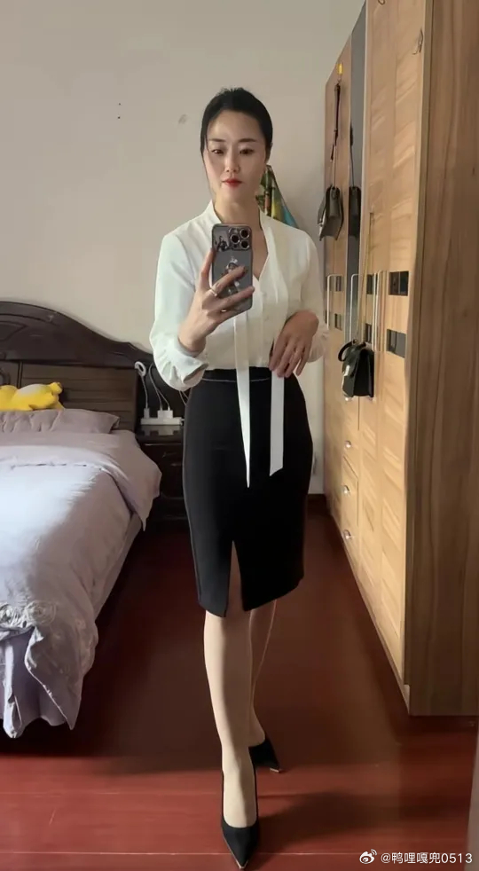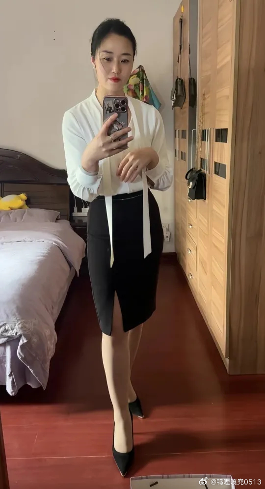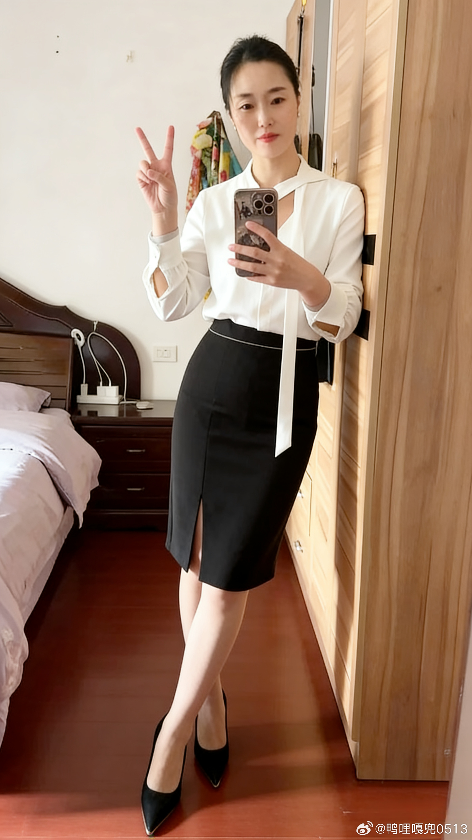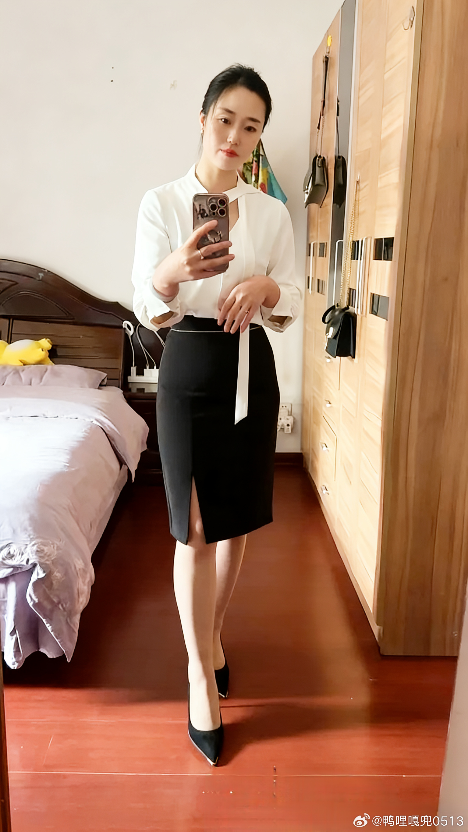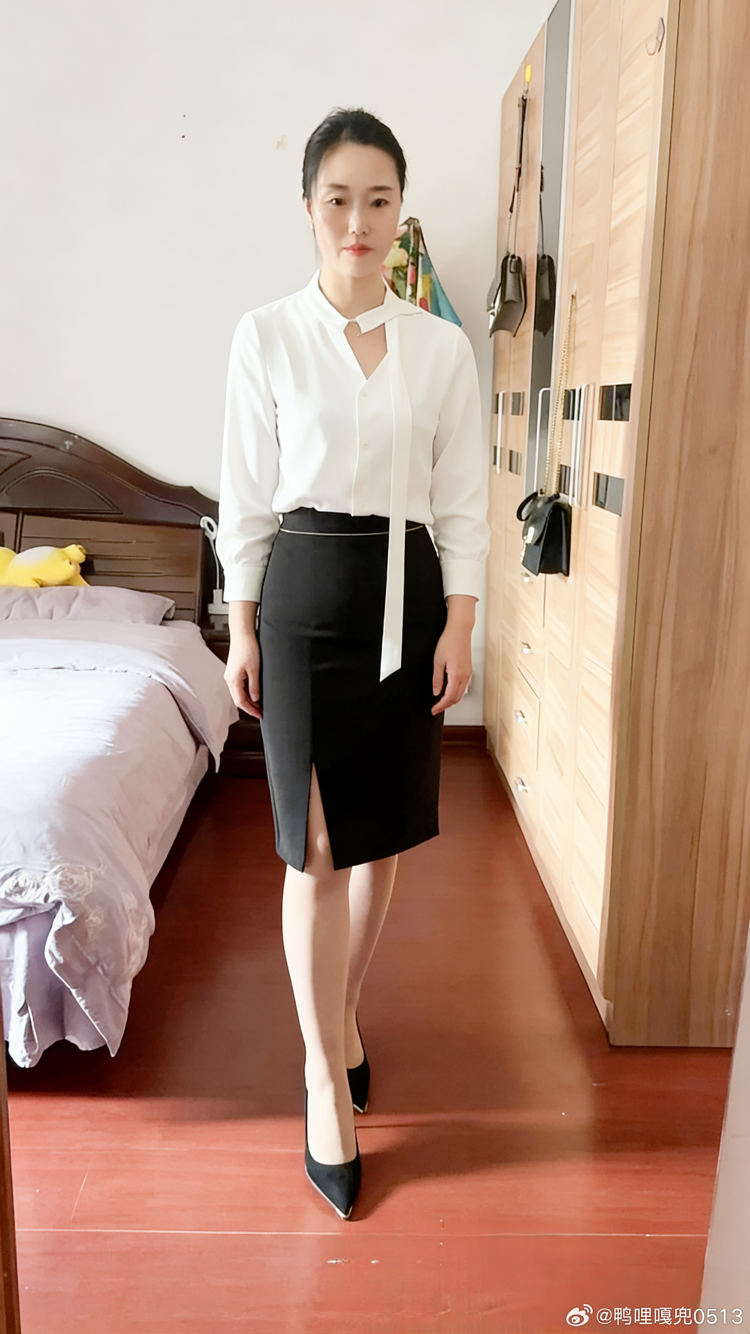 OOTD时尚穿搭今天穿什么ootd 白衬衫搭配黑色开叉短裙气质撩人