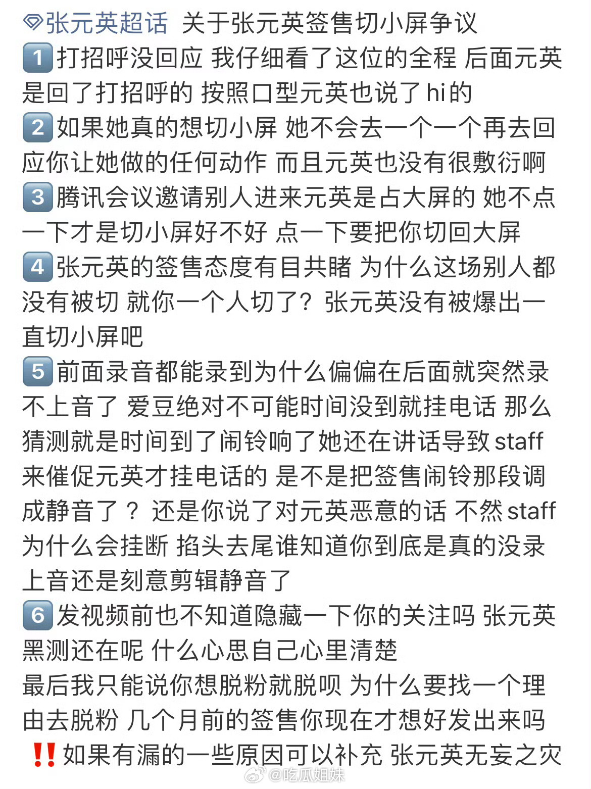粉丝澄清张元英签售态度 网友质疑张元英签售敷衍疑似切小屏,粉丝澄清是黑粉恶意剪辑。