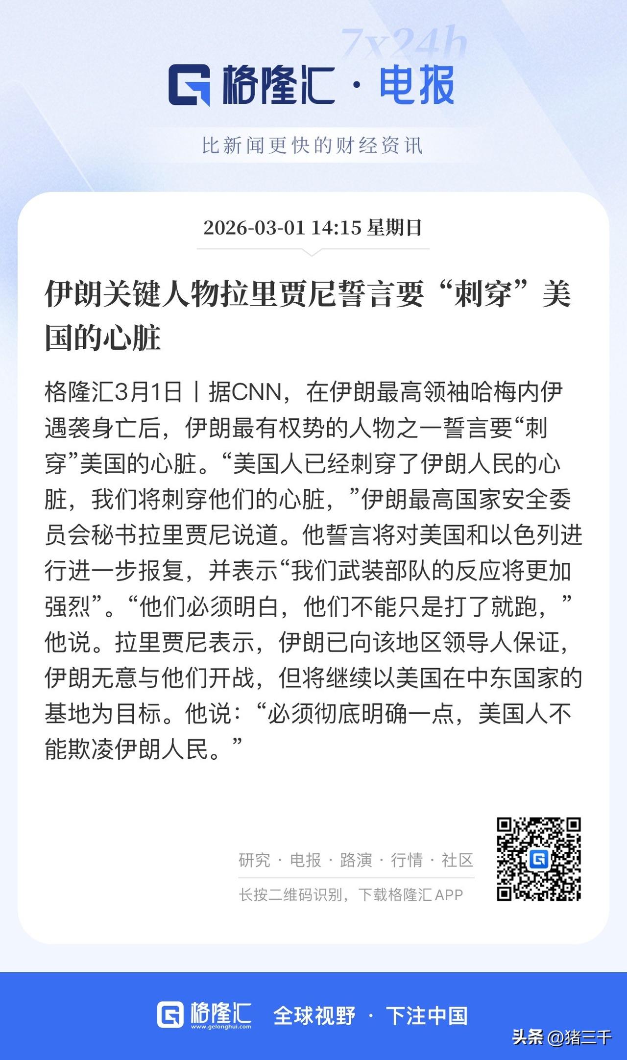 佩泽希扬、拉里贾尼纷纷露面发言, 伊朗被斩杀的核心层迅速完成补位! 现在问题的关键又回到: 佩泽希扬和拉里贾尼是否一条心。 显然哈梅内伊在牺牲前, 一步搞平衡的妙棋变成了臭棋, 哈梅内伊战前有言他倒下了战时指挥权交给拉里贾尼,当时就有军师预计哈梅内伊防着佩泽希扬,最神奇的是这一次高层斩首中这两个最可能登顶伊斯兰权利巅峰的男人都存活下来了! 不难推测有一方已经倒向美国。 顺逻辑推理是佩泽希扬亲美事前有消息躲过一劫,拉里贾尼遵循备胎原则没有参会躲过一劫。 但这个逻辑太通顺了, 通顺到所有人都不相信, 然后就换了一个版本: 拉里贾尼是杀死义父董卓的大反派吕布, 佩泽希扬反而是没有实权的东宫太子。 …
