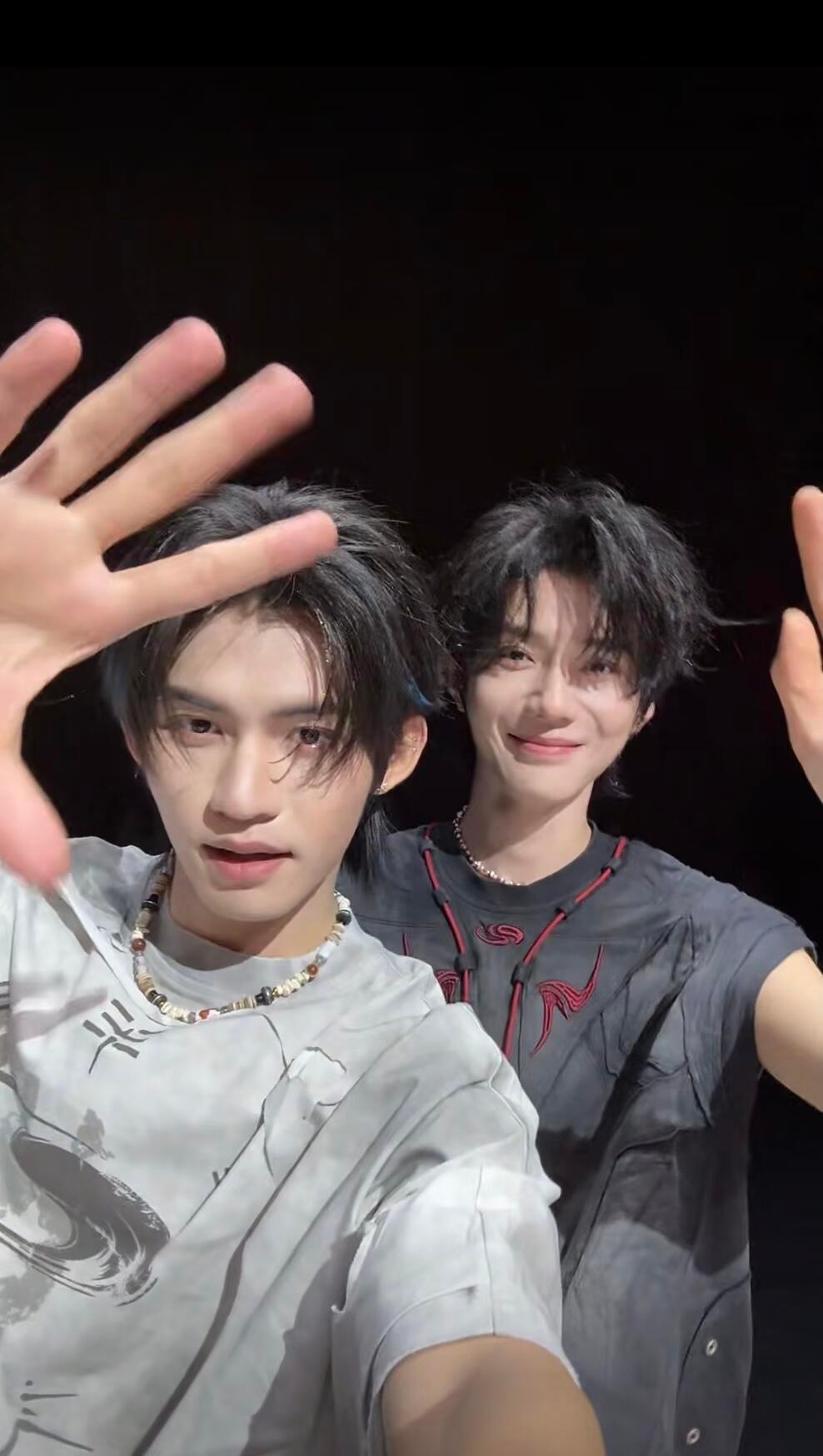 从并肩对视到伸手挡镜头,再到比耶自拍,每一个互动都像在说“我们的故事,才刚刚开始”。暗黑色背景衬得发丝都在发光,连空气里都飘着少年独有的鲜活感云熠星河&云旗郝熠然