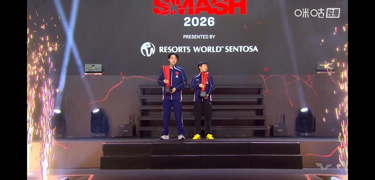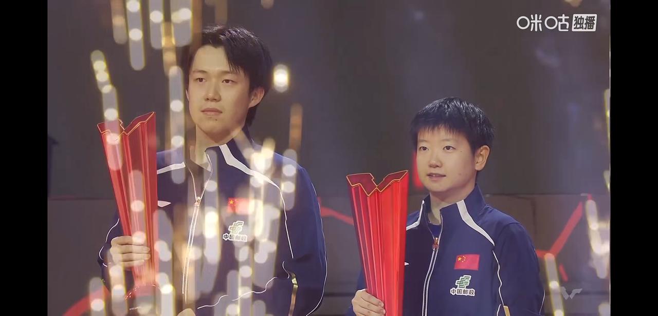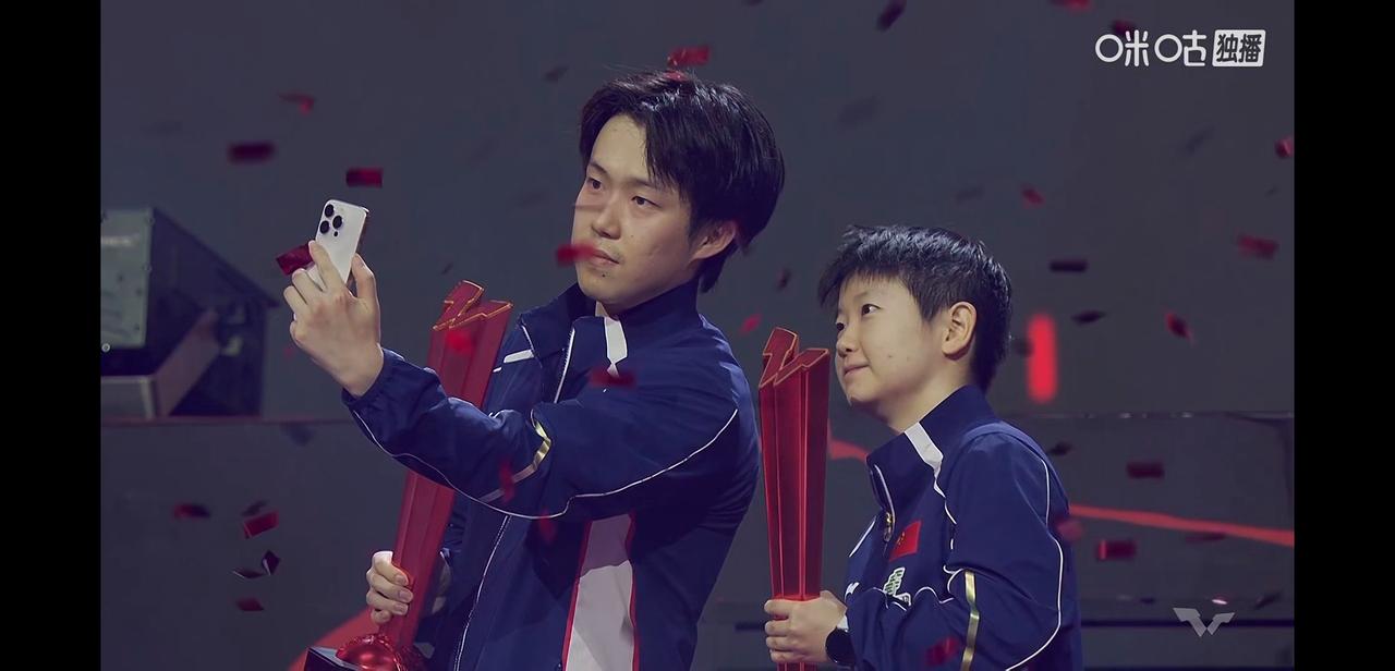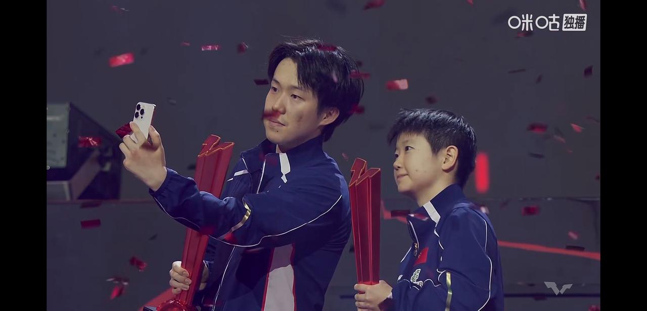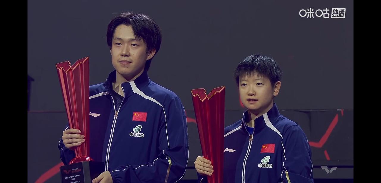快来看呀朋友们, 孙颖莎王楚钦不打混双也合体了。 今天这次真的是顶峰相见了哈, 新加坡大赛场不仅有烟花🎆, 还有红纸雨呀。 两个人还在台上争论了一下, 好像楚钦说:一会拍照你拍。 莎莎说:你拍! 楚钦说:我拍! 哈哈!我是自己脑补的哈, 没看出来他们说的啥, 但是俩人在台上还真是说了什么。 今天的冠军城市宣传照回去哪里拍呢? 期待两个人的合影呀。