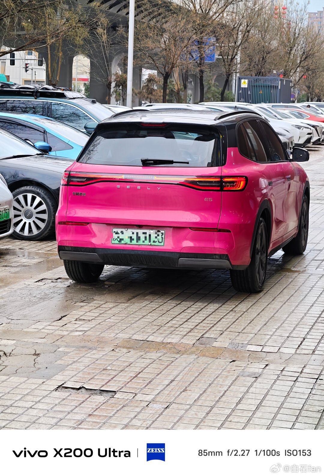 都说红配绿不好看但是这两吉利银河E5的骚红色和绿牌搭配起来有一种很亮眼的感觉。大