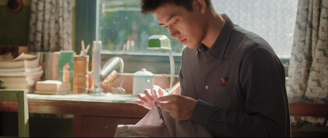 陈飞宇做针线活这段不像演的 陈飞宇这段针线活演得太真实了!翘二郎腿的松弛感,针头挠头的下意识动作,细节里全是生活,导演哪里找的这么会做针线活的演员!纯真年代的爱情