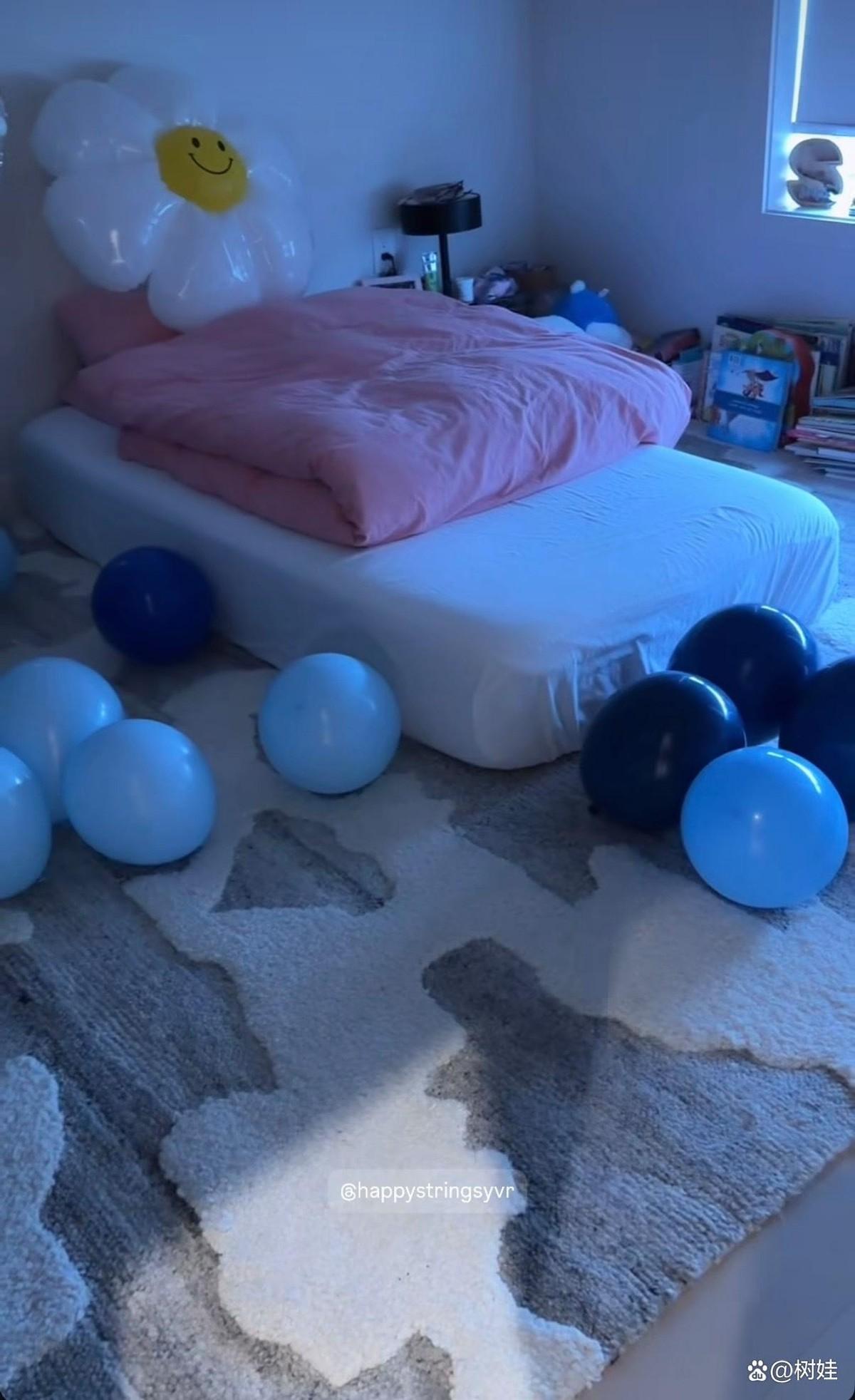 谢婷婷给女儿过7岁生日,请了加拿大的团队。 礼物是一个没有床的房间。灰白地毯,粉红被子,黑色台灯,满地散着书。蓝色气球飘满天花板,拼出“SARA”四个字母。孩子穿着白衬衫黑短裙,和同母异父的弟弟在床垫上打滚。 她出生那年,父亲是谁从未公开。母亲独自带她到四岁,然后有了新的伴侣,又有了新的孩子。 新男友会给她做饭,陪她玩,照顾她起居。可妈妈还是觉得不够。 于是生日这天,整个房间被清空重造。没有家具,只有一片为她一个人铺开的、柔软的领地。像在说:你看,就算家里多了别人,给你的这一块地方,谁也占不去。 爱最怕比较。 怕后来的那个分走原本属于你的蛋糕。怕那句“我对你们都一样”背后,其实是哪边都没顾周全。 所以有些母亲不选择平分。 她们把爱做成一个只容得下一个人的房间。门关上,里面全是你的名字、你的颜色、你喜欢的书和不用起床就能摸到的玩具。外面世界再热闹,推门进来的人都知道——这儿是专属的。 安全感从来不是来自被平均注视的目光。 是你推开那扇门时看见的,满墙都是你的倒影。