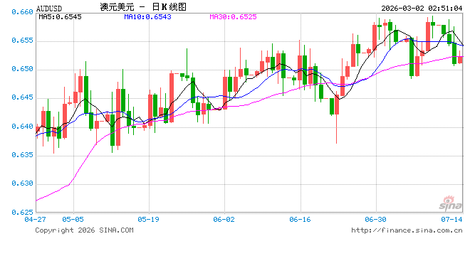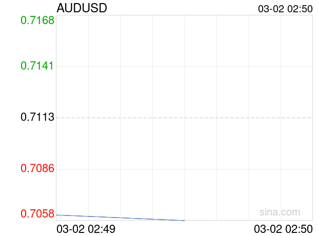 新浪外汇消息2026年03月02日,截至02时50分,外汇市场上澳元兑美元汇率跌破1澳元兑换0.7058美元。跌幅为-0.7732%