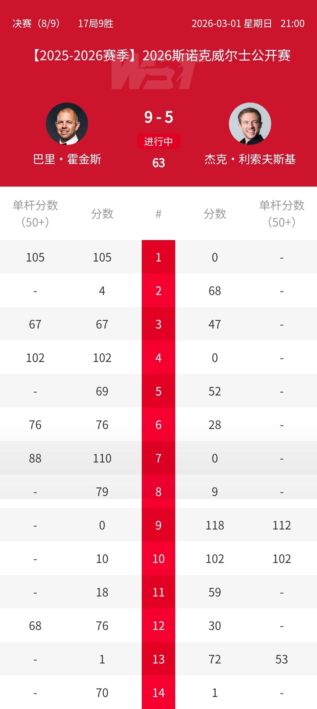 霍金斯9-5击败利索夫斯基夺得2026威尔士公开赛冠军!霍师傅夺冠之路: 64进32:4-3大卫利利 32进16:4-2庞俊旭 16进8:4-2马威 1/4决赛:5-3萝卜 半决赛:6-4吴宜泽 决赛:9-5利索夫斯基
