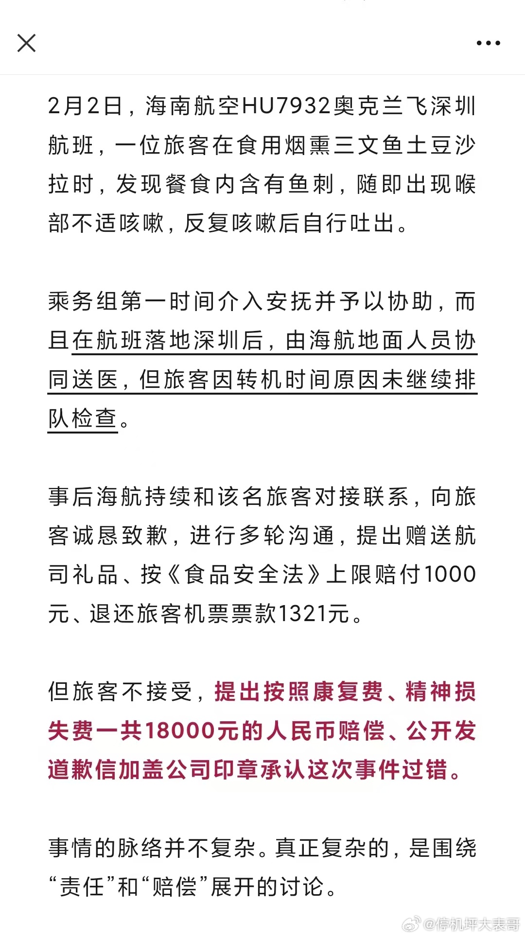 向海航索赔18000元 网页链接