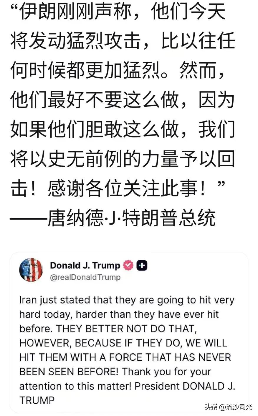 特朗普称对伊朗空袭是“世界伟大的一天”,暗示将采取外交手段。特朗普谈击毙哈梅内伊后与伊朗达成协议的前景:“显然,现在比一天前容易多了。因为他们被打得落花流水。”他声称空袭卓有成效,称周六是“美国伟大的一天,也是世界伟大的一天”。当被问及德黑兰可能出现的新领导人时,特朗普表示“有一些不错的候选人”,但拒绝透露任何人的名字。当被问及这是否是一场战争时,他同样拒绝回答。来源:CBS新闻美国要打伊朗 美国对伊朗开战 “伊朗刚刚声称,他们今天将发动猛烈攻击,比以往任何时候都更加猛烈。然而,他们最好不要这么做,