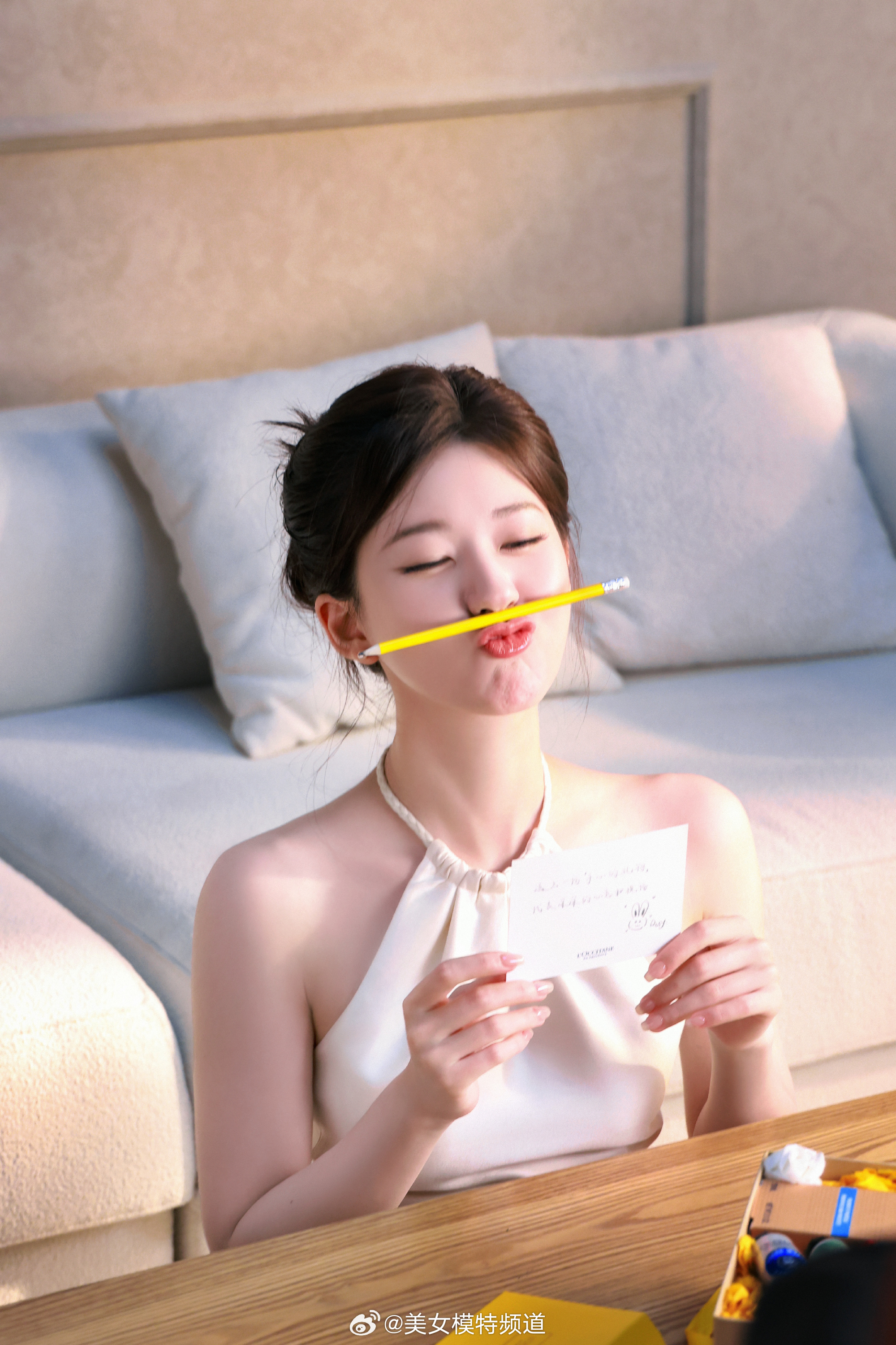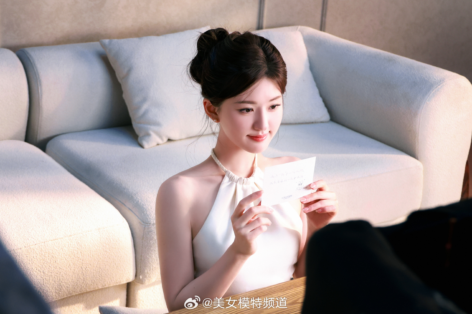 赵露思白色挂脖裙甜美写真
