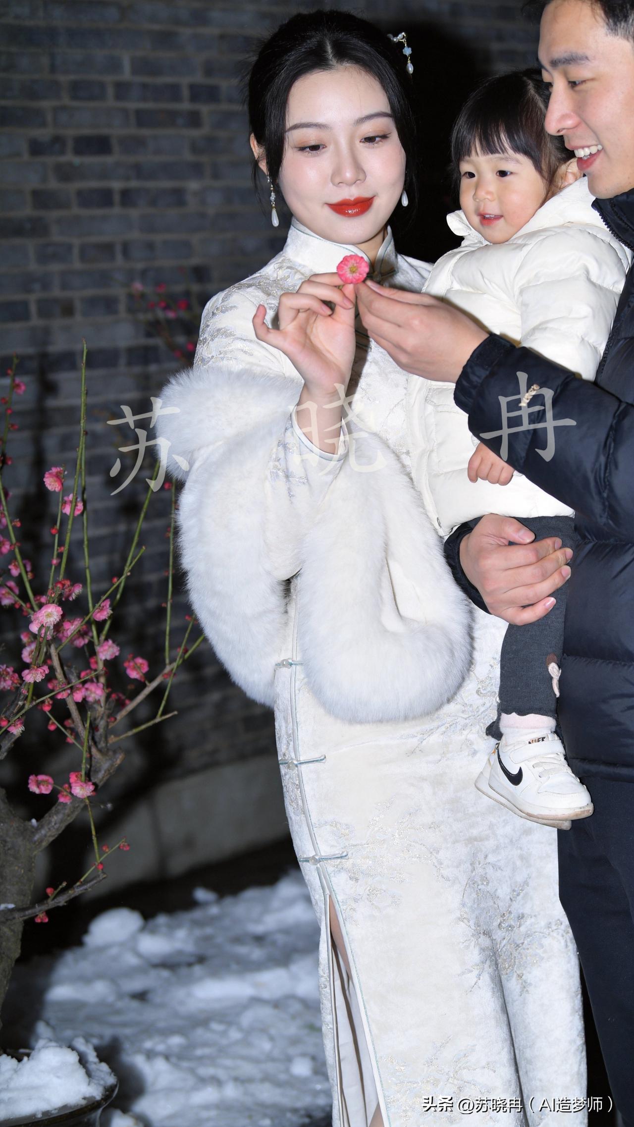 墙角数枝梅,凌寒独自开。他摘下的不仅是一朵红梅,更是予她的一整个春天,还有怀中稚子带来的岁岁安暖。 梅下团圆 雪覆苍苔砌玉墙, 一枝艳色递红妆。 牵怀稚子添欢意, 梅下团圆岁月长 写真人像摄影 苏晓冉 旗袍给予什么样女性美?
